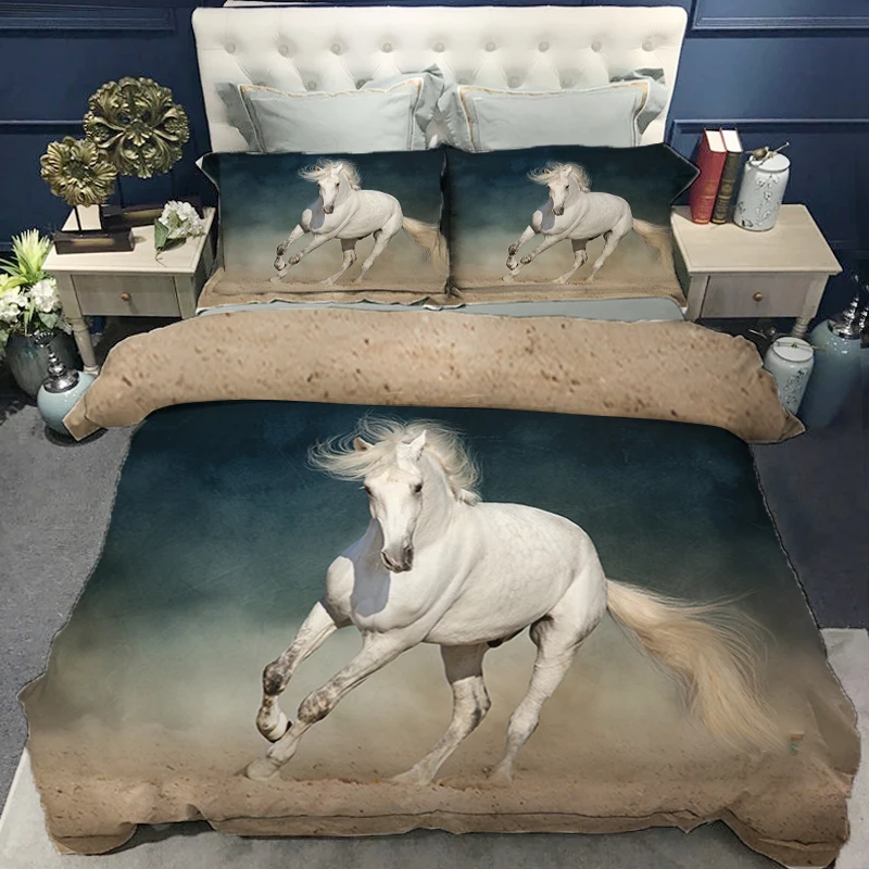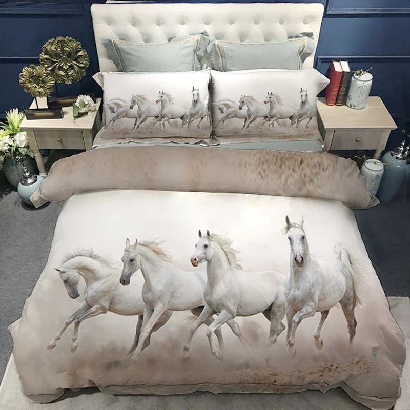 Лошадь пододеяльник набор Белый кровать лошадь крышки Твин Queen King вороной конь двойной полный Постельное белье, способный преодолевать Броды для взрослых детей 220x240 180x210