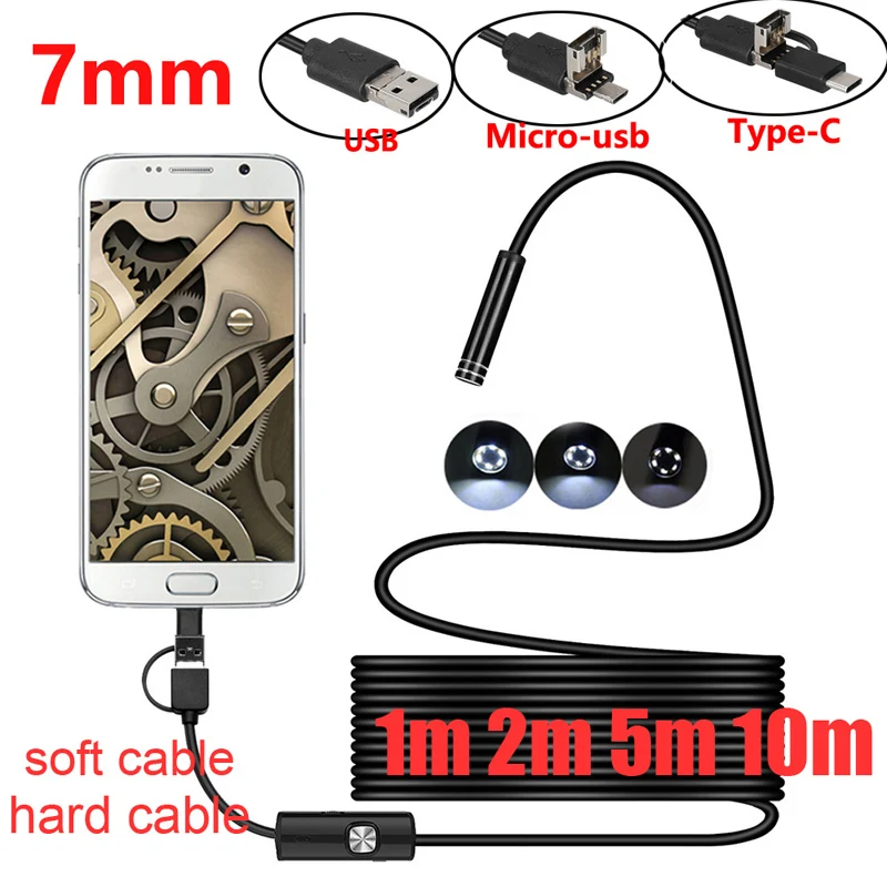 USB-эндоскоп, 2 м, 5,5 м, 7 мм, водонепроницаемый гибкий провод