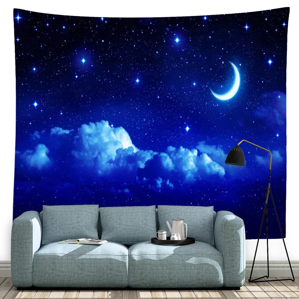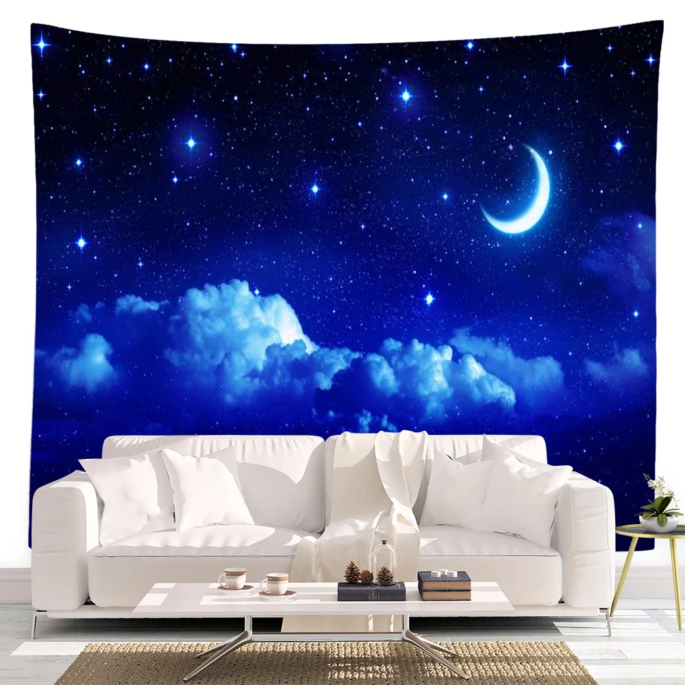 Настенный Гобелен SepYue с Луной и звездами, голубой Звездный гобелен, универсальная галактика, ночное небо, космос, для спальни, гостиной