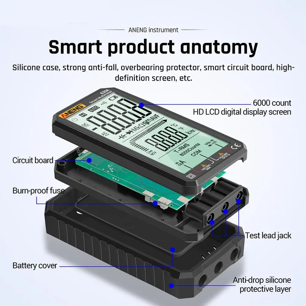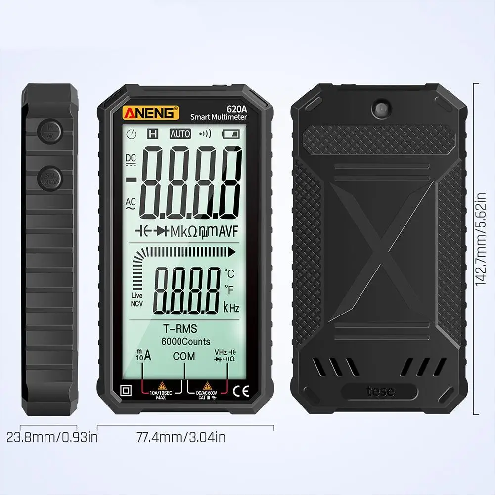 Цифровой мультиметр ANENG 620A, 4,7 дюйма, ЖК-дисплей, ACDC, ультрапортативный мультиметр True-RMS, мультиметр с автоматическим выбором диапазона, мультитестер