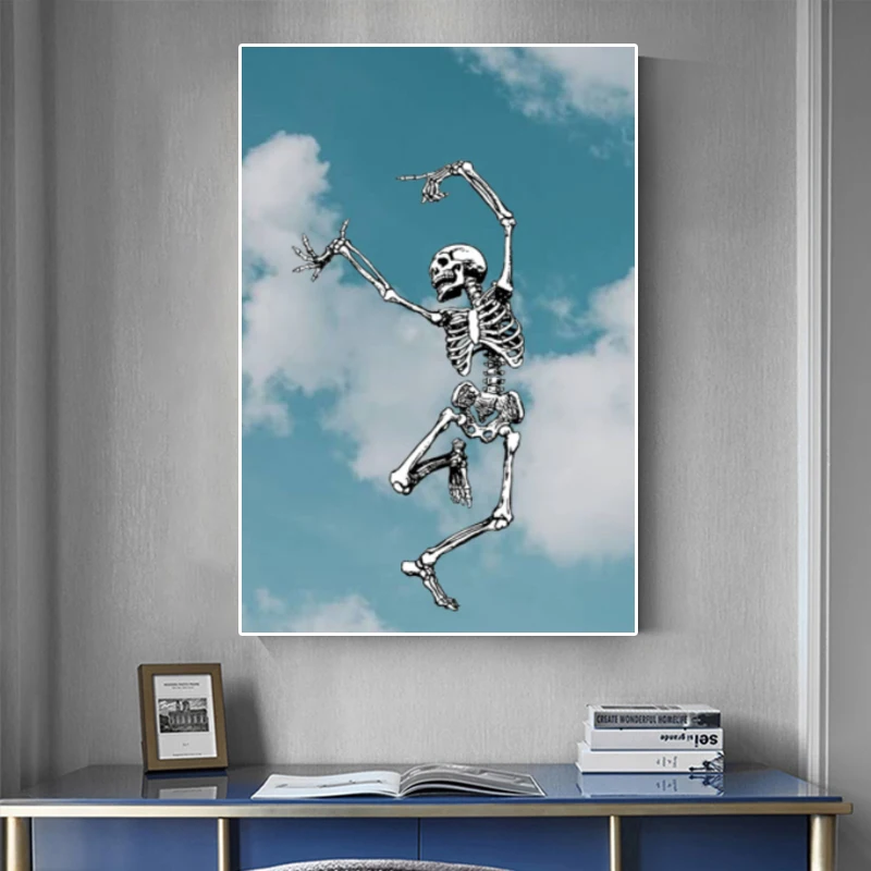 Забавная Картина на холсте с изображением танцующего скелета человека для гостиной настенные художественные плакаты принты Современная Спальня украшение для дома картины