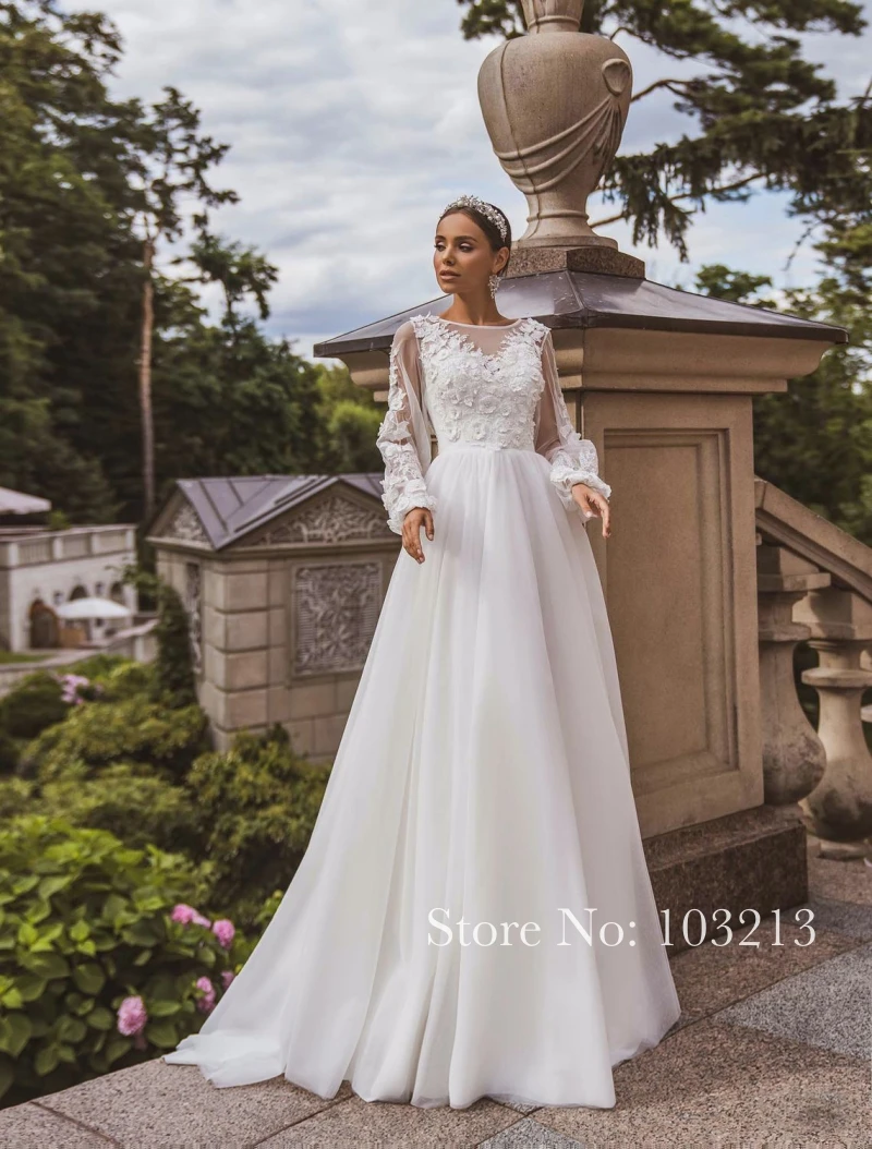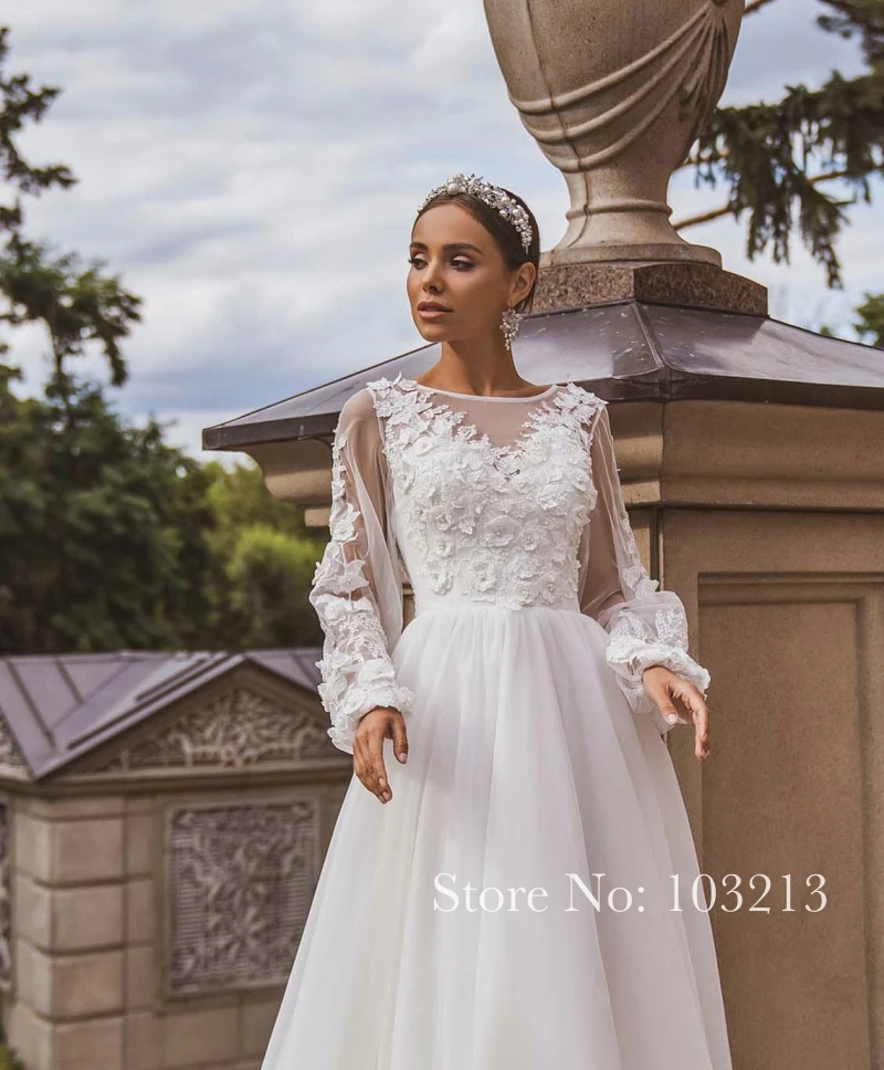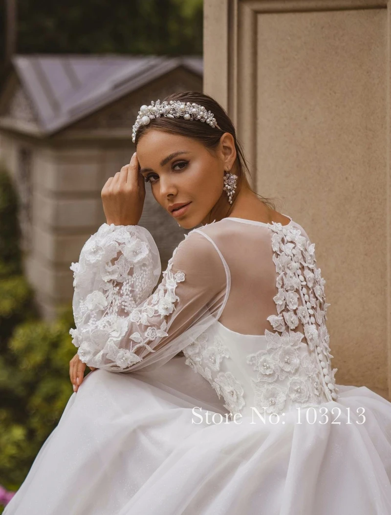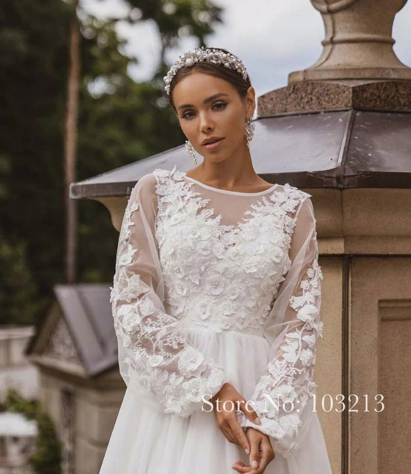 Свадебное платье в стиле бохо, с пышными длинными рукавами, круглым вырезом и 3D цветами, элегантное платье для невесты, 2021