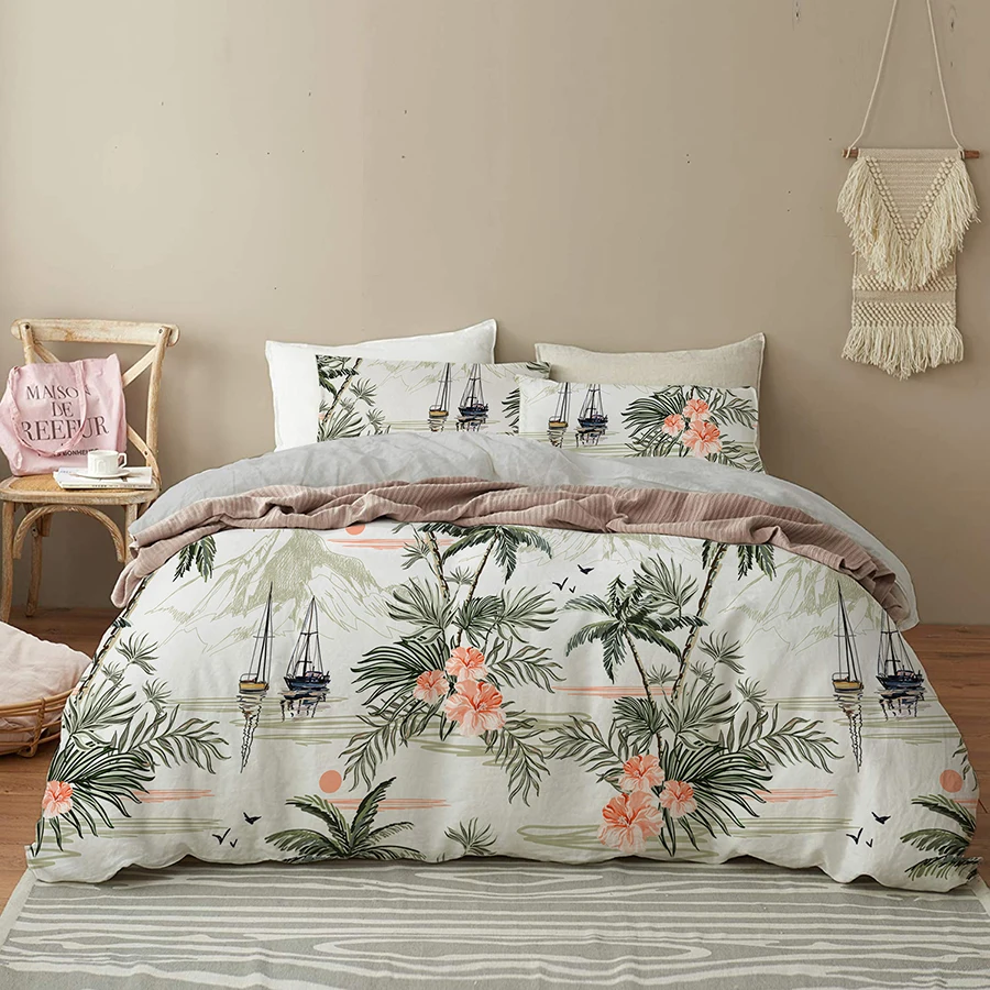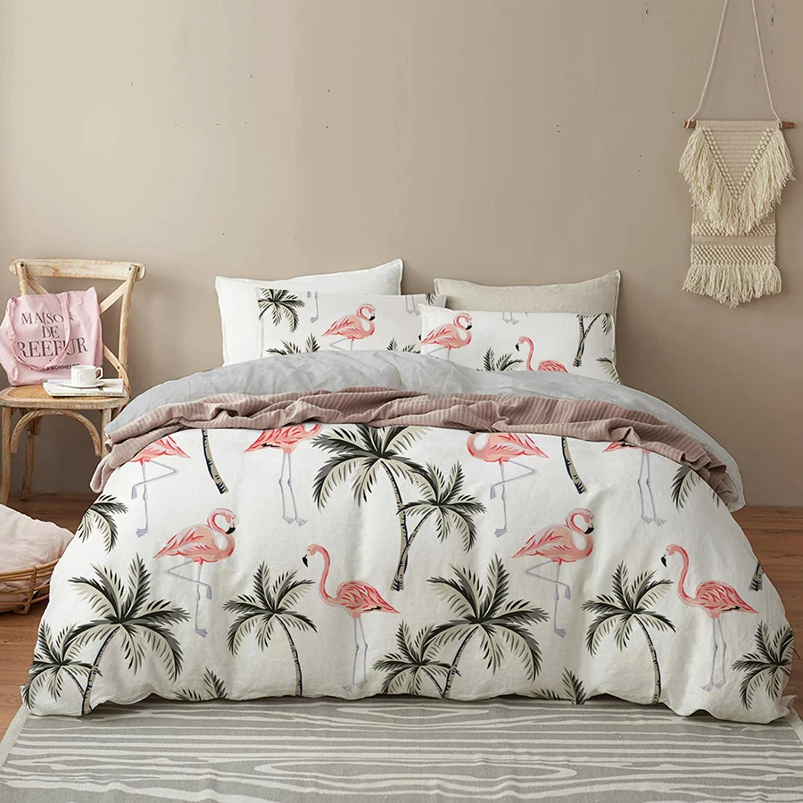 Роскошный комплект постельного белья с тропическими листьями и цветами, комплект с пододеяльником, фламинго, королева, двуспальное постельное белье, пододеяльник, наволочки 220x240