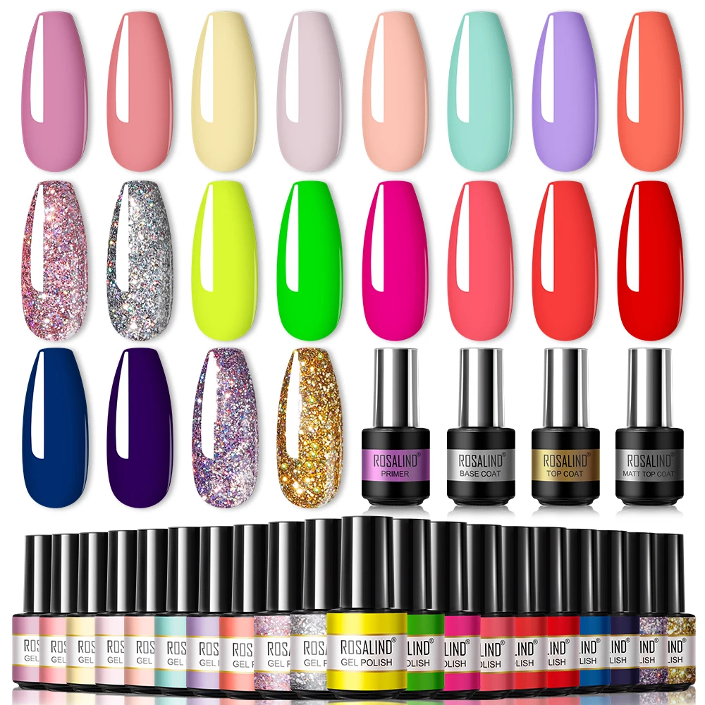Розалинд 24 шт. гель для ногтей комплект летней Цвет гель для ногтей маникюр ногтей искусство! Полупостоянная гель лак лакировка лак для верхнего и базового покрытия для ногтей комплект