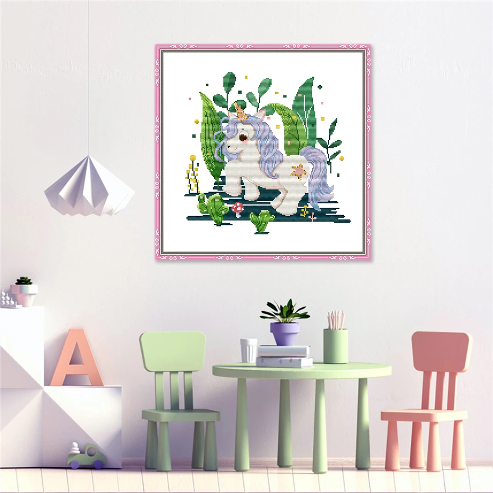 Наборы для вышивки крестиком с принтом единорогов и растений, наборы для вышивки на холсте 11CT 14CT, сделай сам, домашнее украшение ручной работы