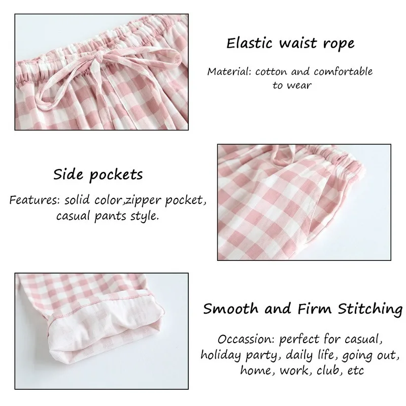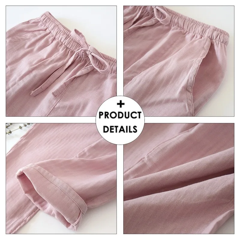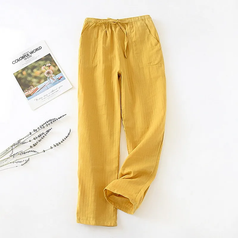 Пижамы для пар, летние хлопковые штаны для сна в японском стиле, простые повседневные домашние штаны больших размеров с эластичным поясом для мужчин и женщин