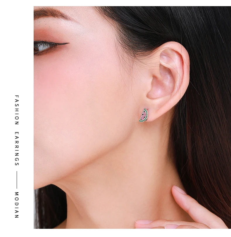Modian 2021 новые летние 925 стерлингового серебра Симпатичные завод арбуз Модные женские серьги-гвоздики для женщин и девочек изысканные ювелирные изделия