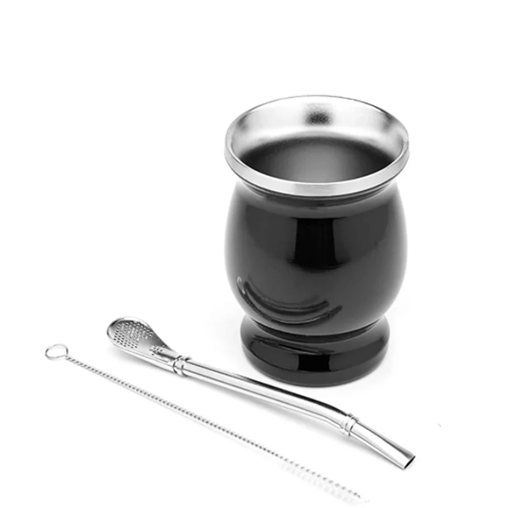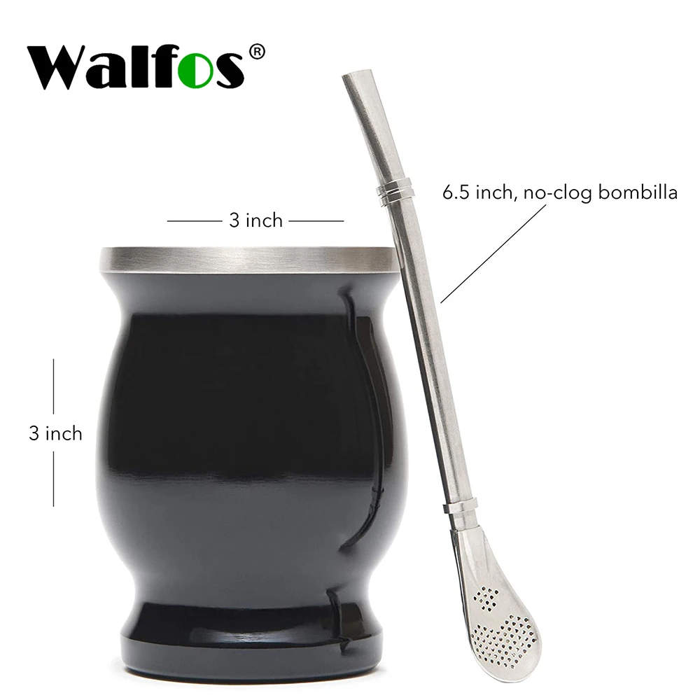 Walfos Mate натуральная тыквачайная чашка набор 8 унций Bombillas Yerba Mate соломинка, чистящая щетка, нержавеющая сталь, двойные стенки