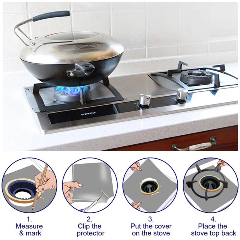 4 шт.компл. защитное покрытие для газовой плиты покрытие для плиты, коврик для чистки, устойчивый к высоким температурам, аксессуары для кухонной посуды