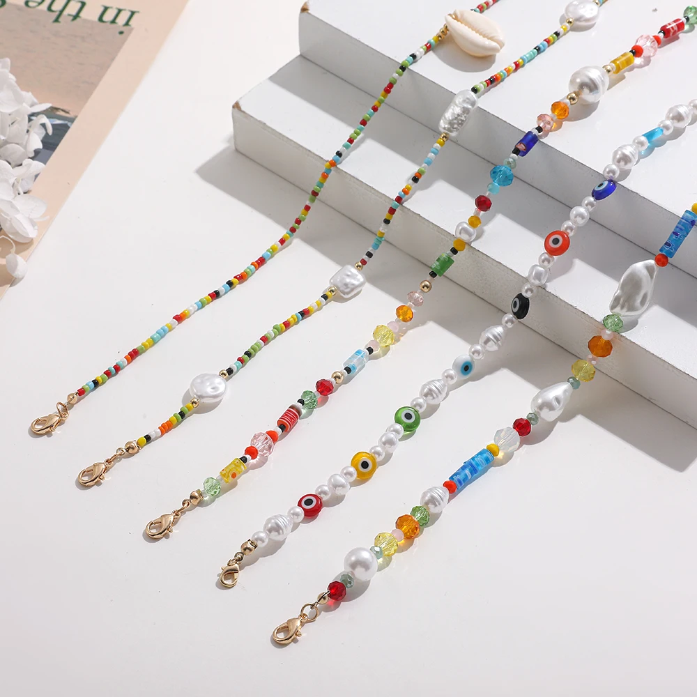 Женское Ожерелье с жемчугом, ожерелье-чокер в богемном стиле с натуральными ракушками и прозрачными бусинами