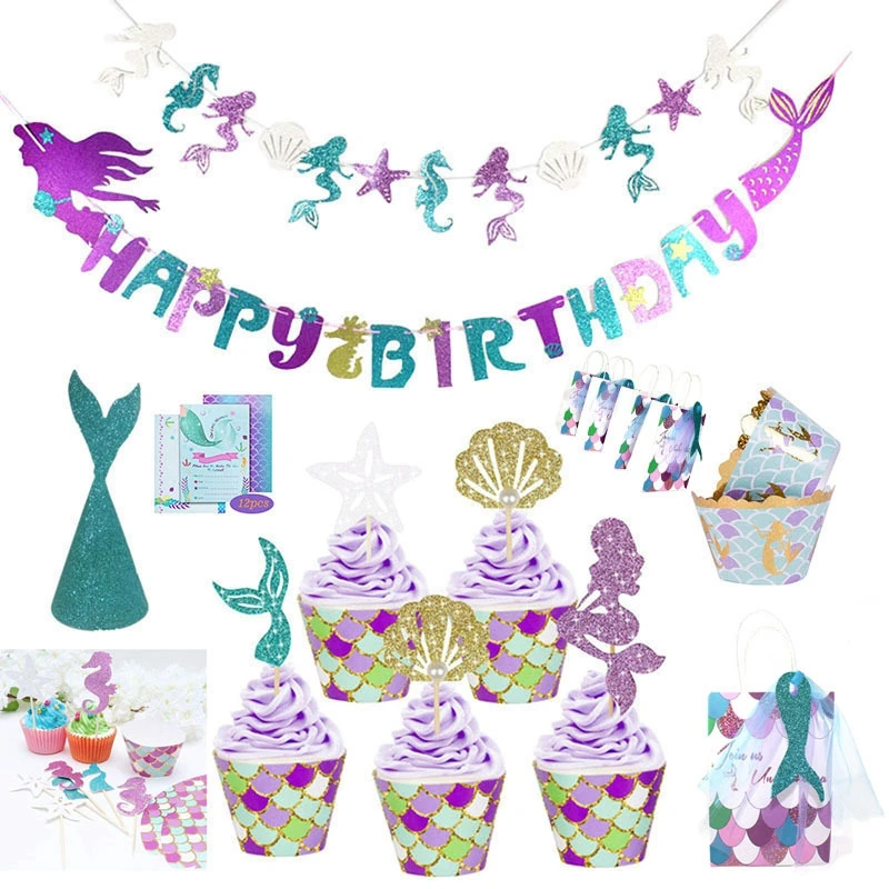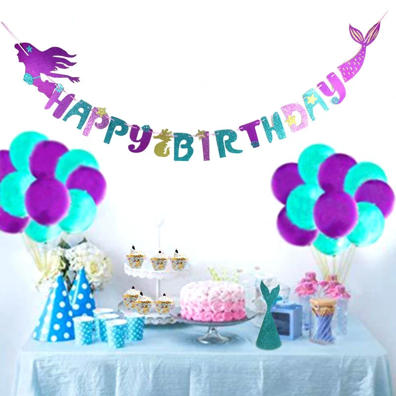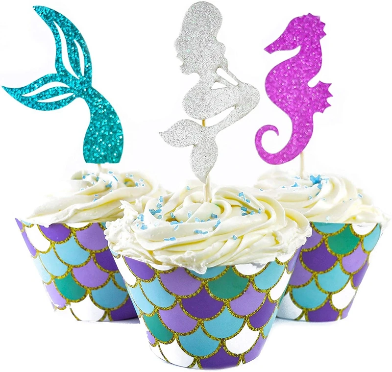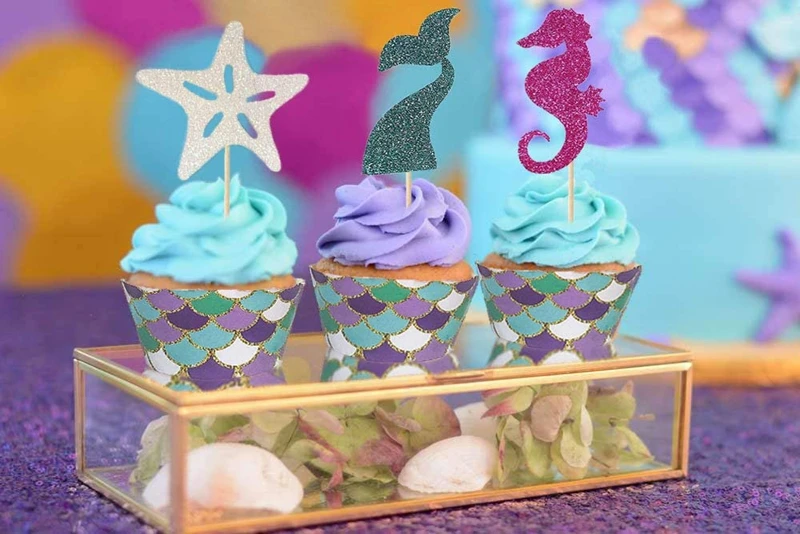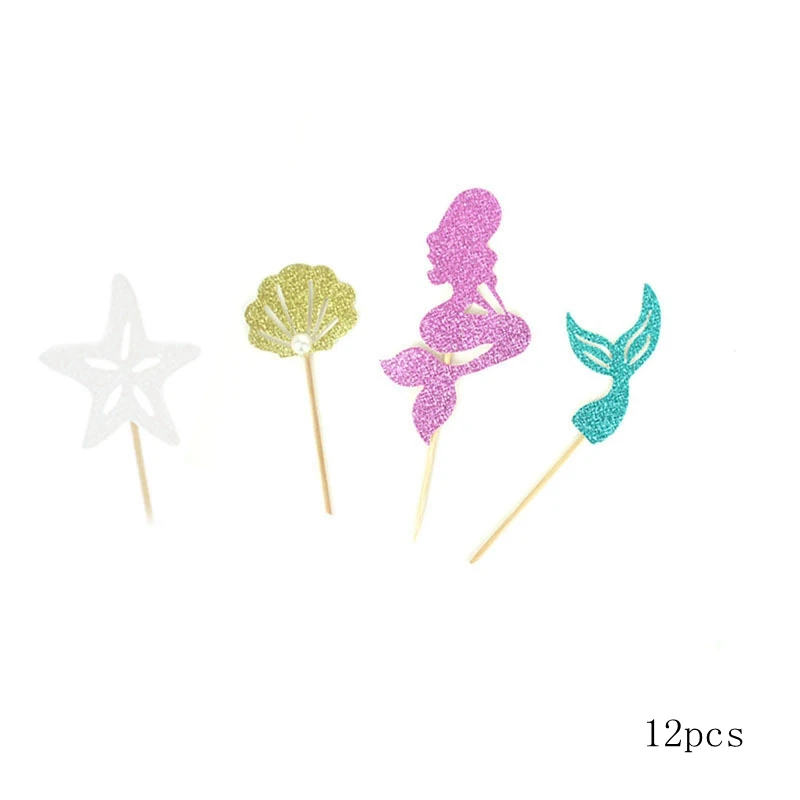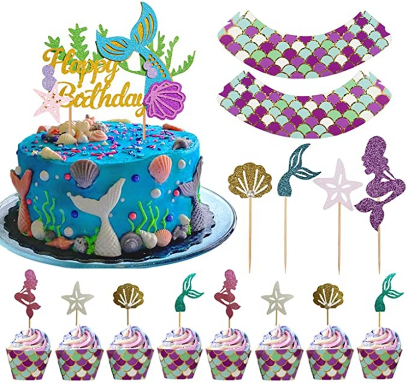 Русалка, украшения для кексов на день рождения, баннер, тема, детский душ, для дня рождения, украшения для торта для вечеринки
