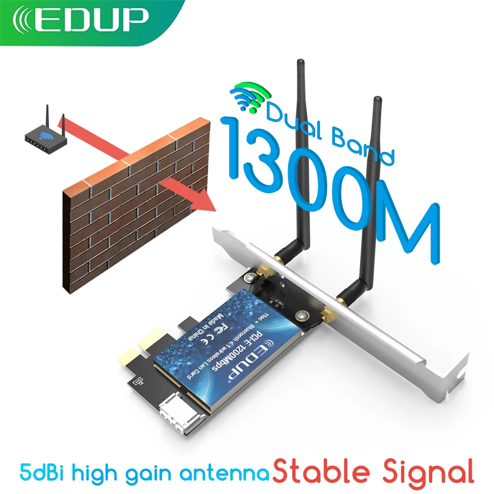 Сетевая карта EDUP 1300 Мбитс, PCI Express, Wi-Fi адаптер PCIE LAN, адаптер, двухдиапазонный 2,4G5 ГГц, беспроводной Bluetooth, ПК и ноутбук EDUP