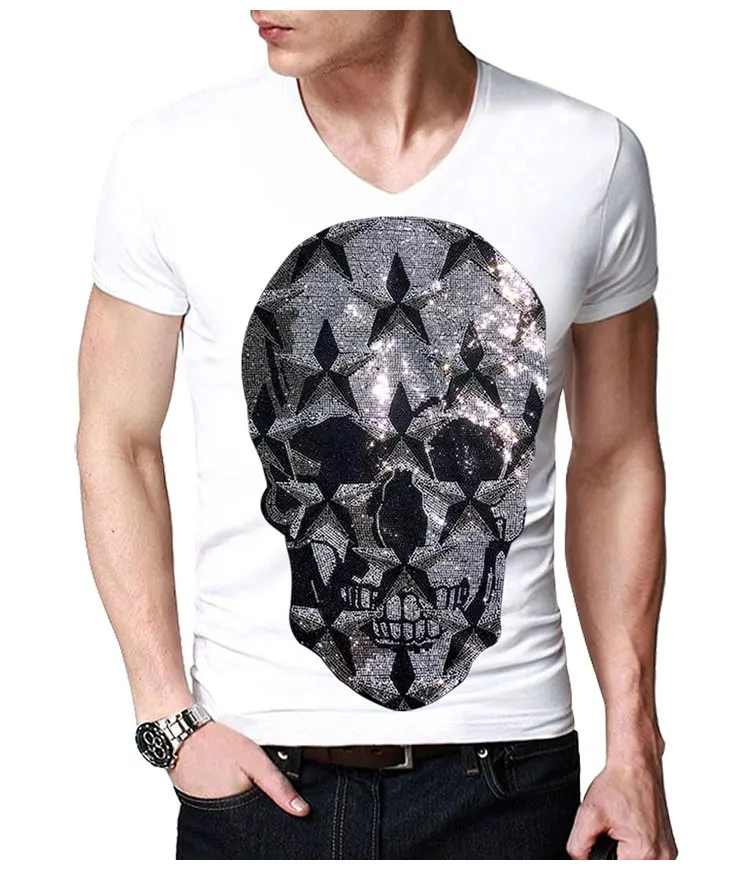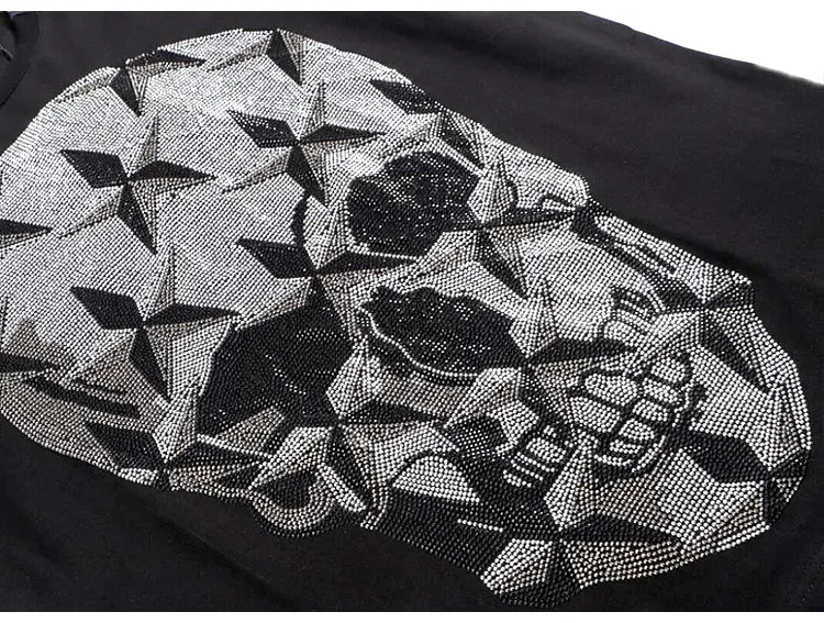 Винтажная Готическая Мужская футболка со стразами и черепами, мужские топы с круглым вырезом, 3D череп, короткий рукав, хип-хоп, уличная Мужская Спортивная футболка