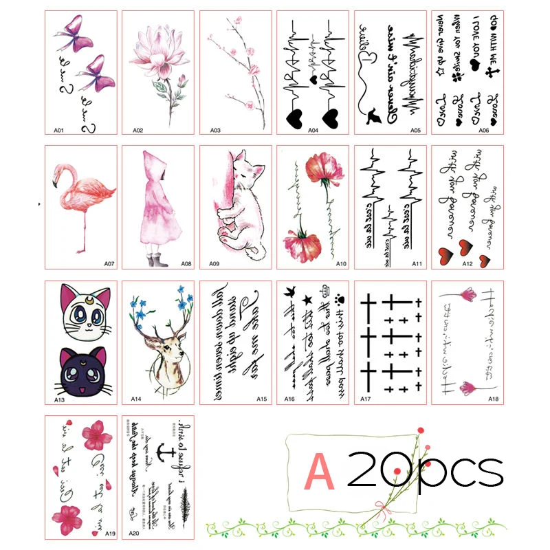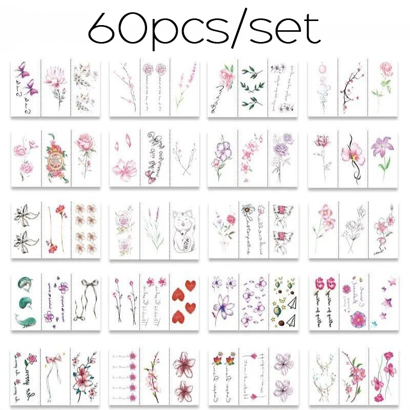 Временные татуировки, цветы, ветки любви, водостойкие животные, 60 шт.