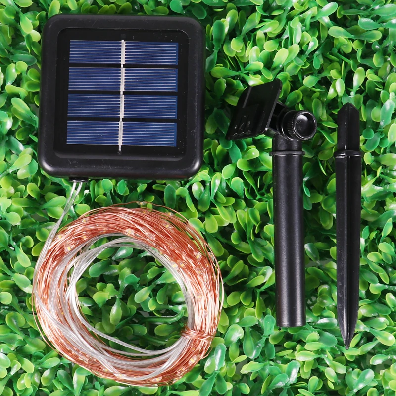 [Сказочный струнный светильник на солнечной энергии s] -струнный светильник с подвижной медной проволокой 98/66/33 футов и светящимися светодиодами 300/200/100, с устойчивым углом обзора 360 градусов они освещают в каждом направлении. Идеально подходит для украшения вашего сада, патио, ворот, двора, свадьбы, вечерние и т. Д.[Высококачественные медные провода]-наш медный провод очень тонкий и гибкий, а солнечные медные провода легко сгибаются и образуются вокруг растений, знаков, мебели и почти всего остального. В то же время с низким тепловыделением уровнем выбросов светодиодный ламп, светодиодный гирлянды не будет перегреваться при смазывании формы несколько часов.[8 режимов освещения для создания веселья]-великолепные Режимы освещения, включая комбинацию, мигающие светлячки, волны, выцветание, погоня/мигание, медленно выцветание, мерцание/мигание и постоянное включение, которые могут создать различные атмосферы для вашей жизни.[Легко установить] гибкая медная проводка может легко построить нужные формы; Оберните вокруг стволов деревьев или беседок; В темноте провод тускнеет, оставляя только яркие огни.[Водонепроницаемость]-и струнные лампы, и солнечные панели являются водонепроницаемыми IP65. Не беспокойтесь использовать их в дождь.Характеристики:Цвет: белый/теплый белый/Разноцветный/синий/фиолетовый/розовыйМощность: СолнечнаяДлина: 33 футов/66 футов/98 футовСветодиодный Кол-во: 100/200/300 светодиодный sНапряжение солнечной панели: 2 вВремя работы: более 8 часов после полной зарядкиПосылка включает:1/2 * Солнечный струнный светильник1/2 * солнечная панель1/2 * Кол-во
