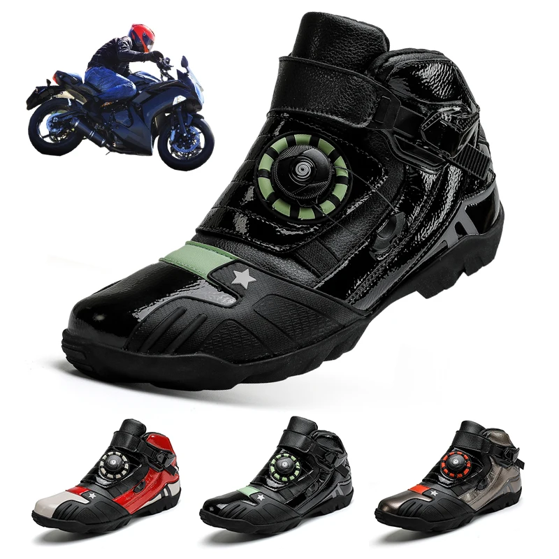 Обувь для езды на мотоцикле унисекс, кожаные мотоциклетные ботинки из микрофибры, Уличная обувь для гоночных дорог, Нескользящая дышащая мотоциклетная обувь