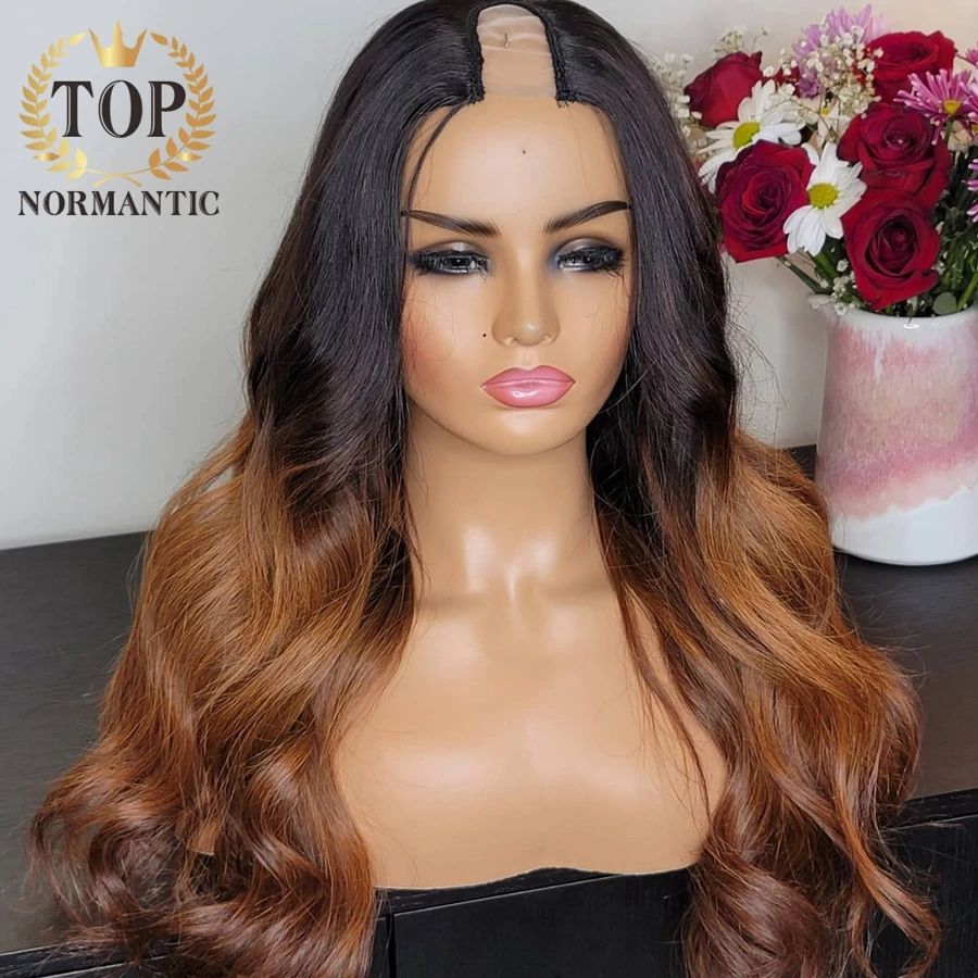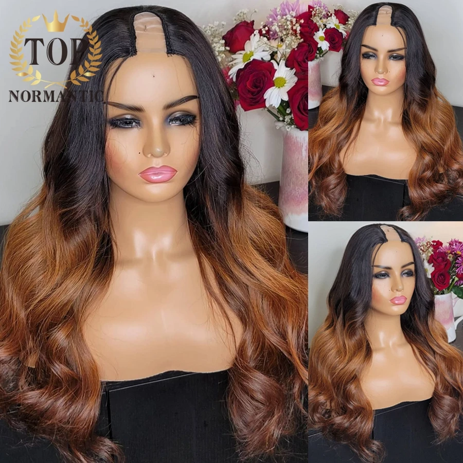 Topnormantic 250% глубокие кудрявые U-образные парики Омбре коричне...