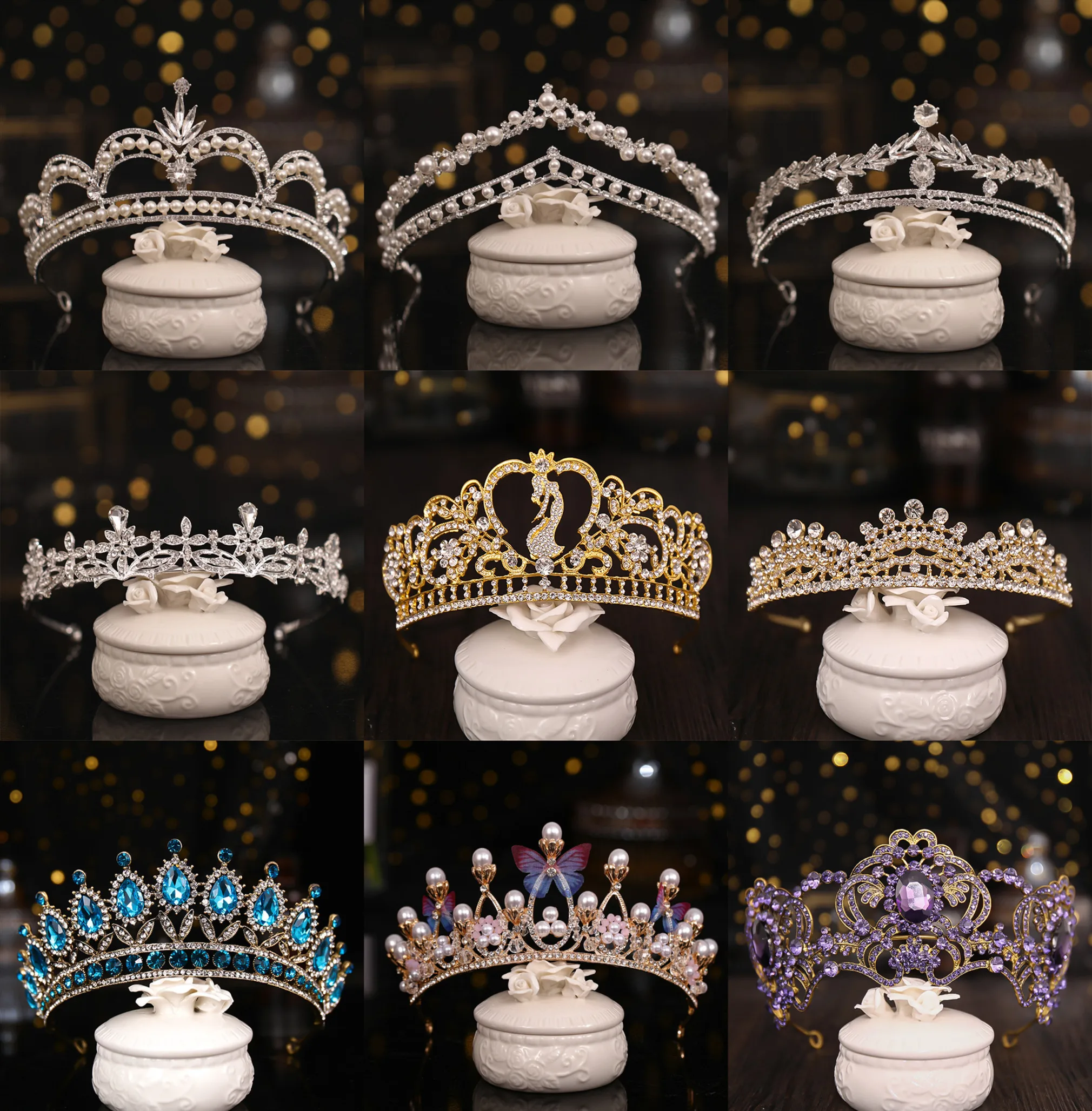Кристалльная тиара из горного хрусталя диадема в виде королевской короны тиары принцессы Свадебные украшения для волос вечерние свадебные аксессуары для волос для женщин головной убор