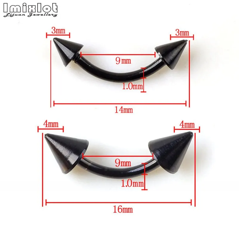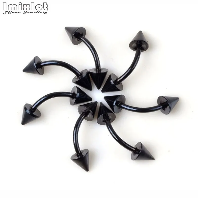 10 шт черный шип для бровей изогнутый пирсинг губная Штанга Кольцо 18G Нержавеющаясталь кольца брови спирали пирсинг для пупка ювелирных изделий