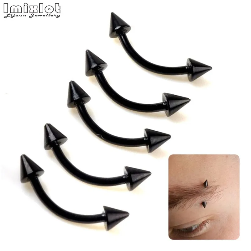 10 шт. черный шип для бровей изогнутый пирсинг губная Штанга Кольцо 18 г нержавеющая сталь кольца для бровей Спираль пирсинг для пупка ювелирные изделия