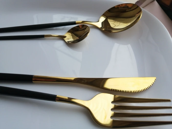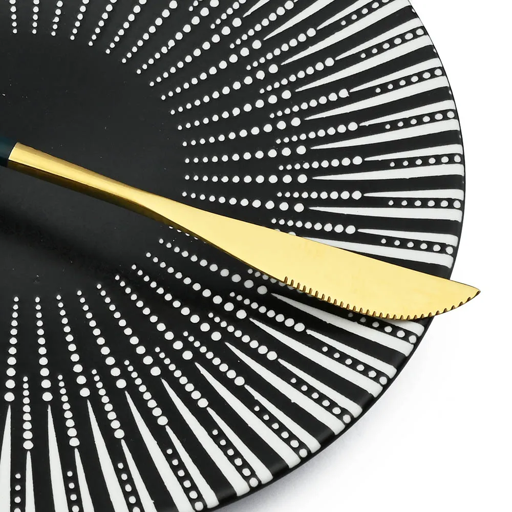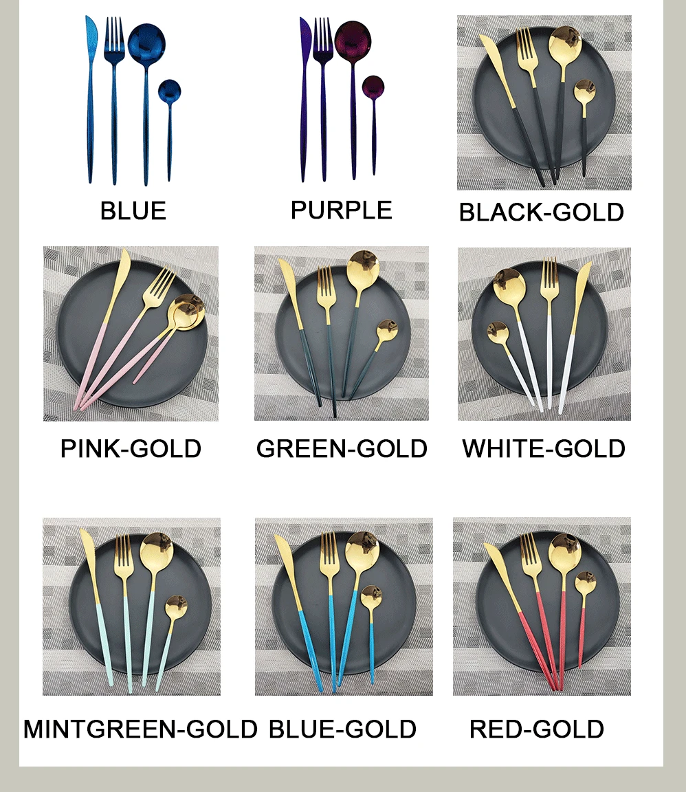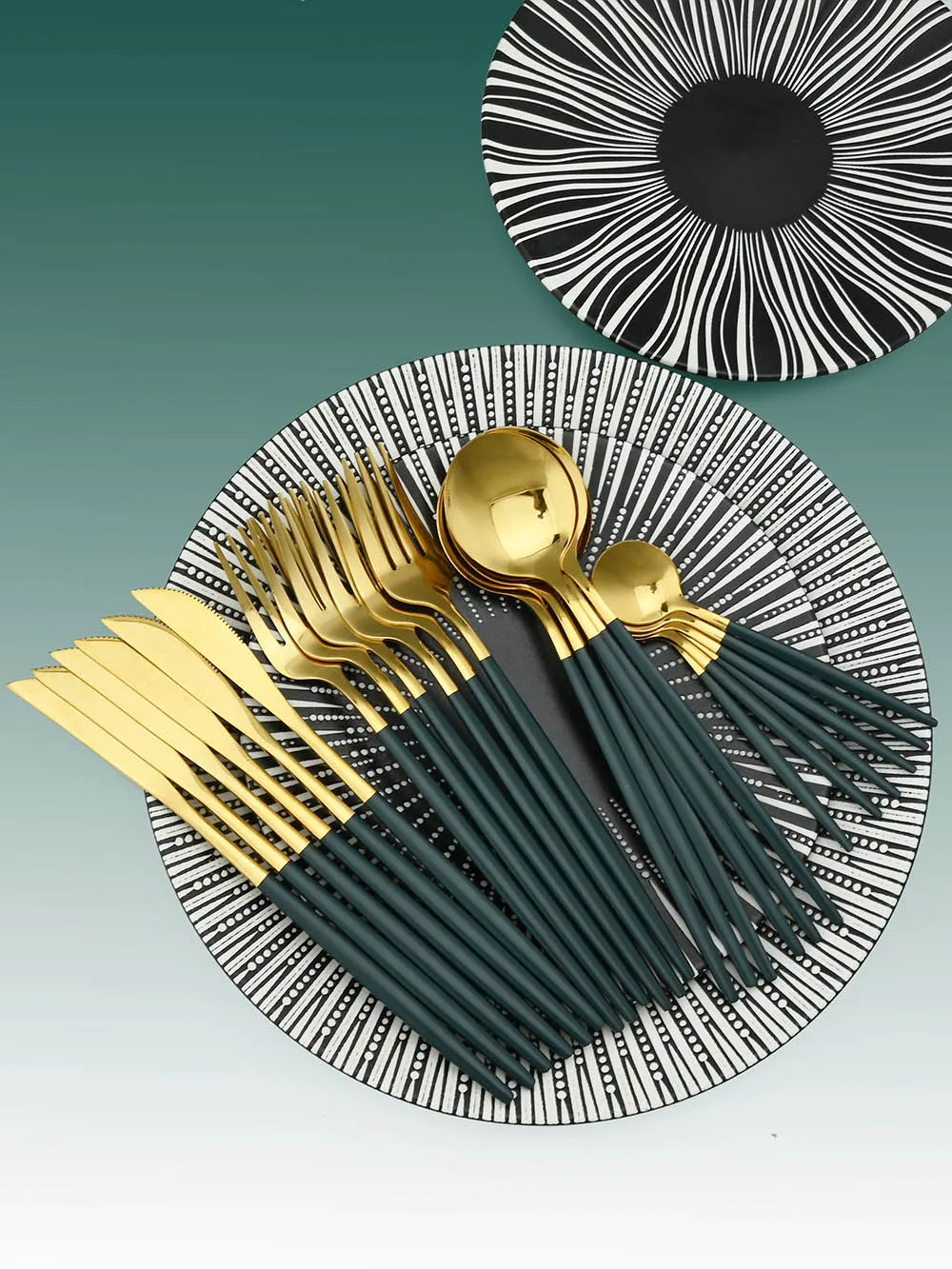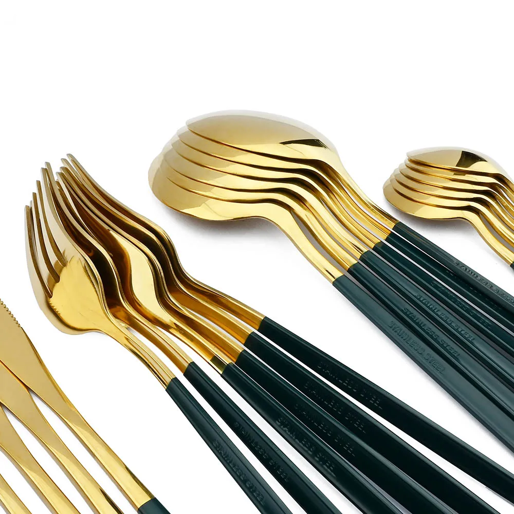 Набор столовых приборов из нержавеющей стали, комплект из 24 приборов зеленого и золотого цвета, нож, вилка, ложка, столовые приборы, минималистичное серебро