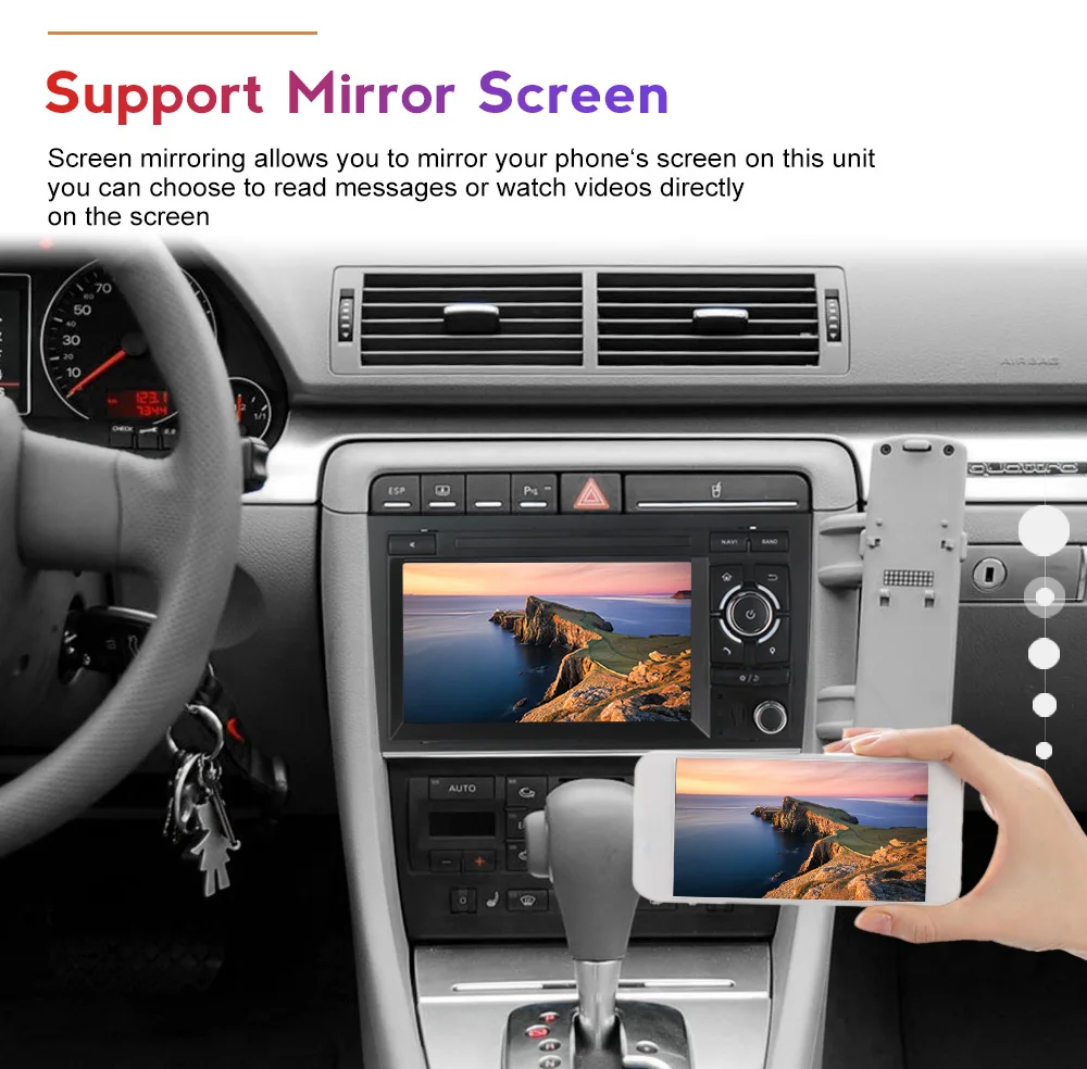 > Совместимость с функциями управления рулевого колеса. Легко переключать песни, каналы и регулировать громкость, чтобы обеспечить вам более безопасное и приятное путешествие.