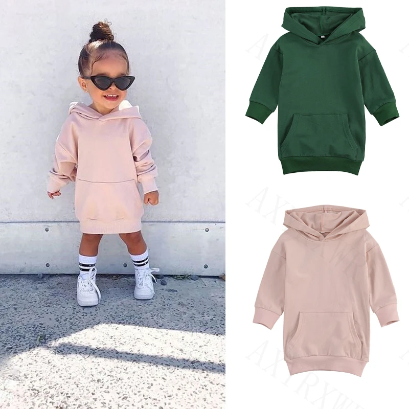 1 х однотонное платье-свитер с капюшоном и длинными рукавами для маленьких девочек