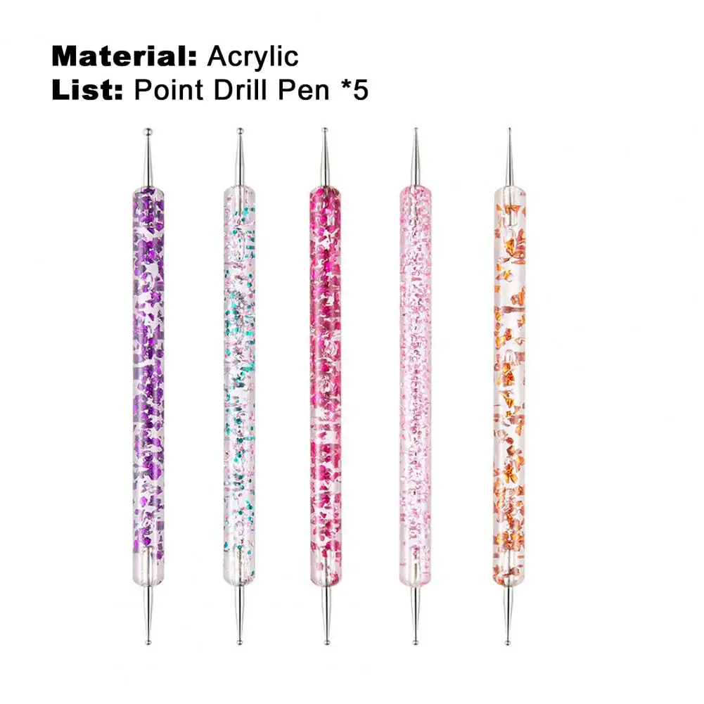 Набор из 5 предметов, УФ-гель для рисования ногтей, точечная ручка, акриловая ручка стразы, кристальная 2-сторонняя кисть, салонное украшение, набор инструментов для маникюра