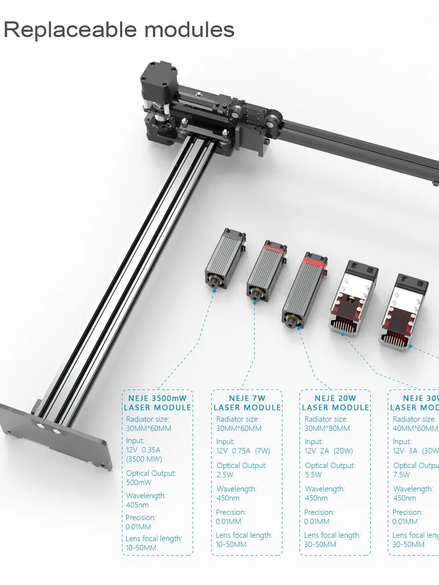 NEJE plus 5,5 W FAC 5,5 W Laser-Schneide-Maschine Бесплатная доставка лазерный гравировальный станок Рабочая зона 255x440 ммМодель: NEJE Master 2S plusМатериал радиатора: авиационный алюминий + латунный корпусСветящийся цвет: синийРазмер сечения: 40 мм x 40 ммРежим охлаждения: Интеллектуальный контроль датчика температуры + вентилятор охлаждения 10000 об/мин 40 ммРазмер: 60*40*40 ммРазъем адаптера: 5,5 2,1 портГравировка: МДФ/балса/бумага/дерево/ткань/пластик/кожа/Фанера/пенная бумага/анодированный алюминийНе выгравировать: металл/стекло/камень/керамика/PCB/нержавеющая сталь/светоотражающий материал/прозрачный материалТехнические параметры:Оптическая Выходная мощность: 5,5 w/FAC 5,5 WДлина волны: 455-450нмФорма луча: точка (фокусируемая)Рабочее напряжение: 12 В постоянного токаВходное напряжение: DC12V 2A3AПримечание: Температурный интерфейс может быть отключен, мы предоставляем текстовые инструкции по приобретению температуры на wiki.Безопасный диапазон температур:<60 ℃Время работы модуля: 10000-20000 часов