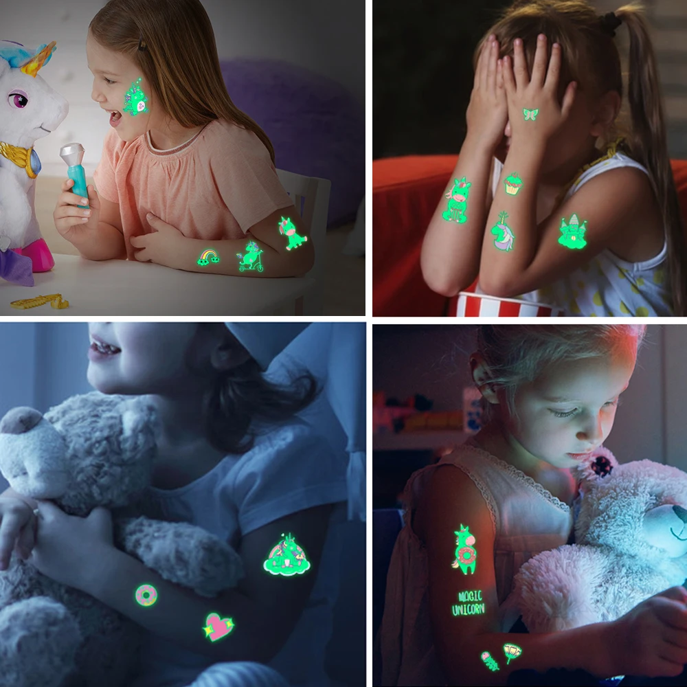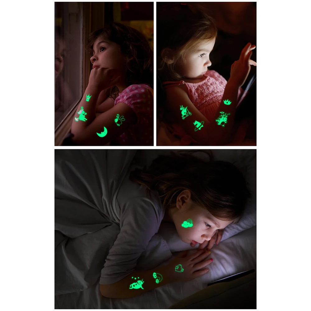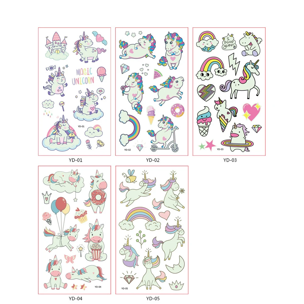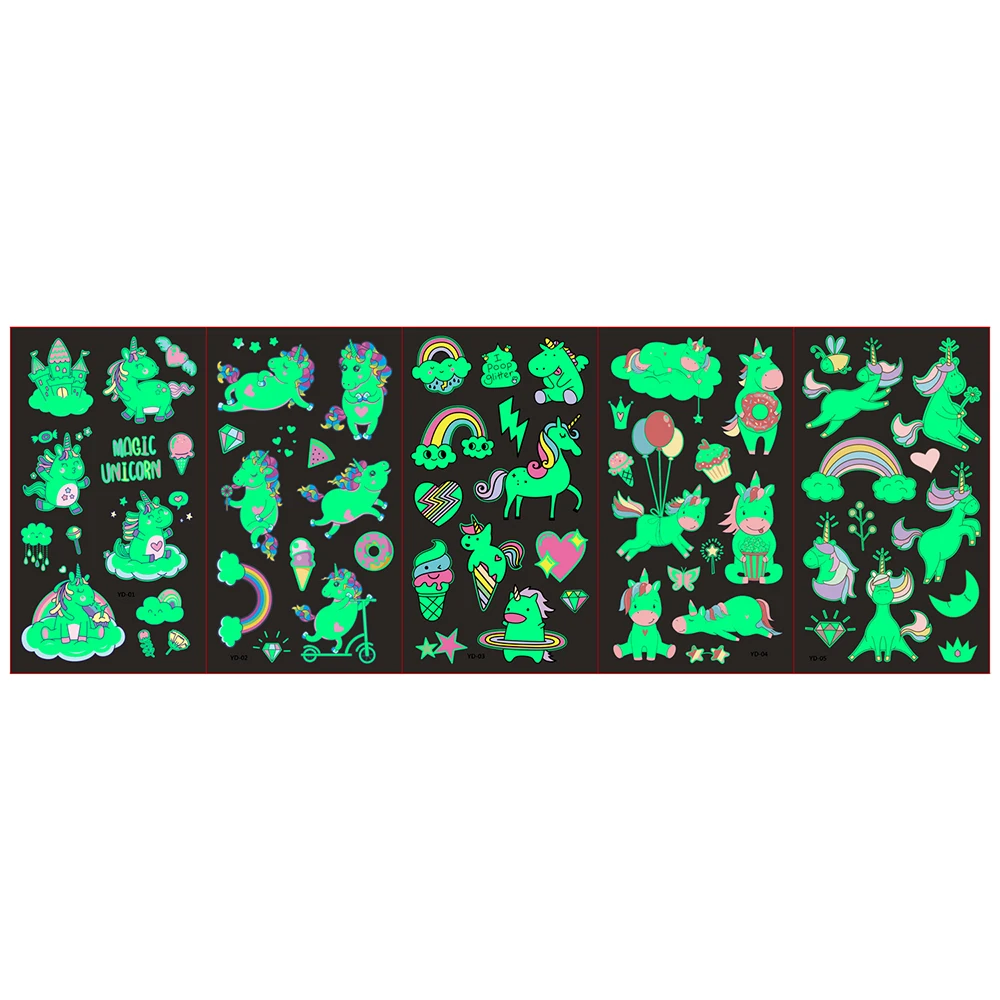 5 шт.лот новая татуировка лицо светящаяся Временная цветная Татуировка Единорог Русалка Динозавр Детская Милая Татуировка наклейка тело татуировка для детей