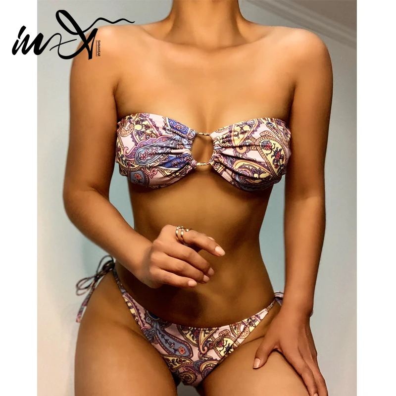 Бикини-бандо In-X, купальник с принтом 2021, женский купальный кост...