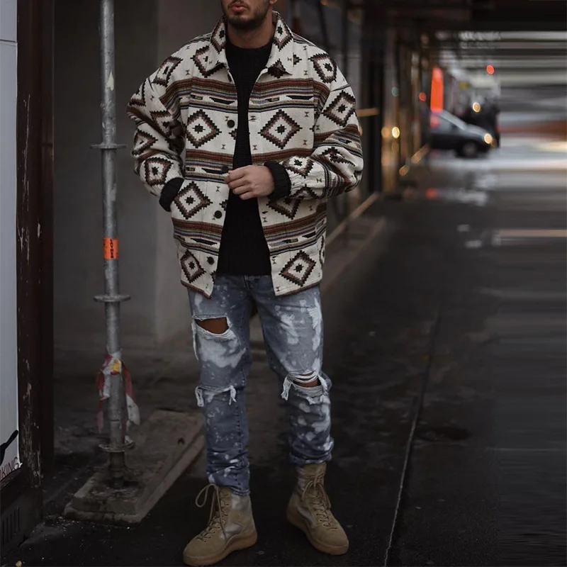 Мужская винтажная куртка с геометрическим принтом, однобортная курт...