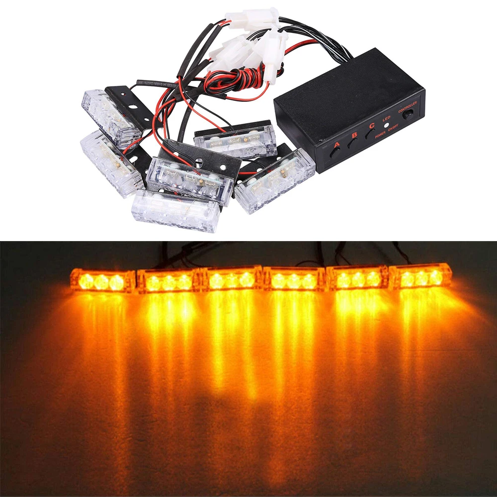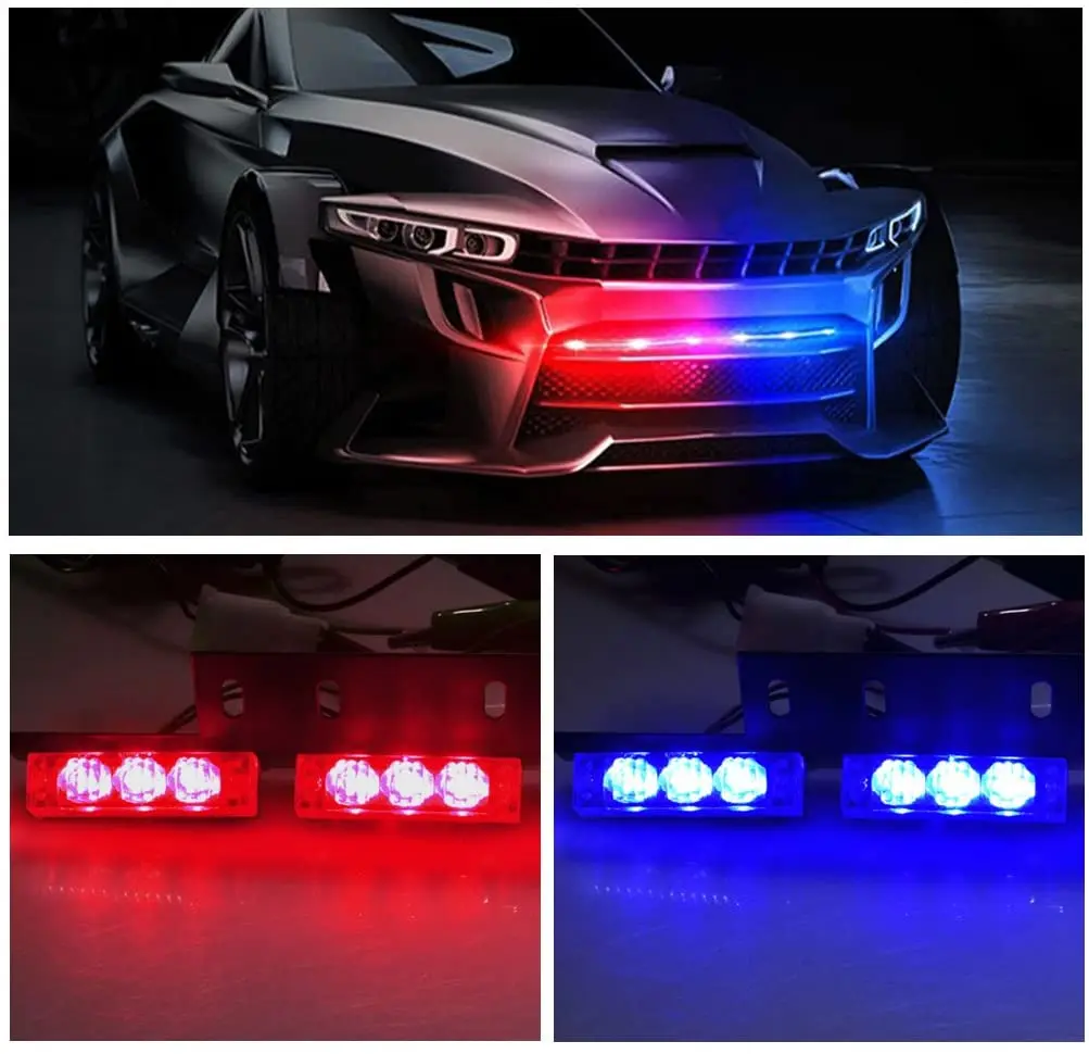 6x3 светодиодсветодиодный Предупреждение огни для автомобиля, проблесковые огни для передней решетки автомобиля, аварийные мигающие огни, 3 режима мигания, красный, синий, желтый, белый