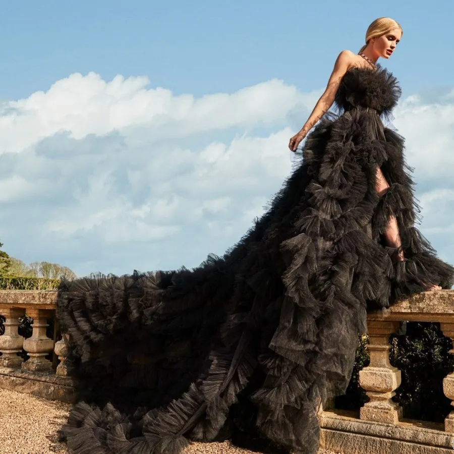 Шикарное черное Тюлевое вечернее платье для невесты, сексуальное длинное ТРАПЕЦИЕВИДНОЕ ПЛАТЬЕ С Высоким Разрезом и шлейфом, с открытыми плечами, пышное с оборками