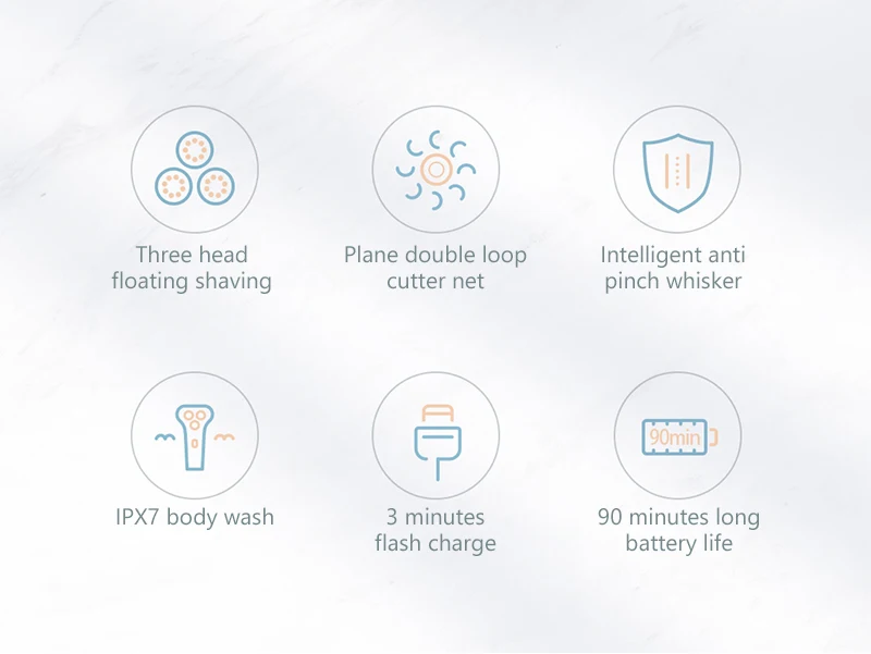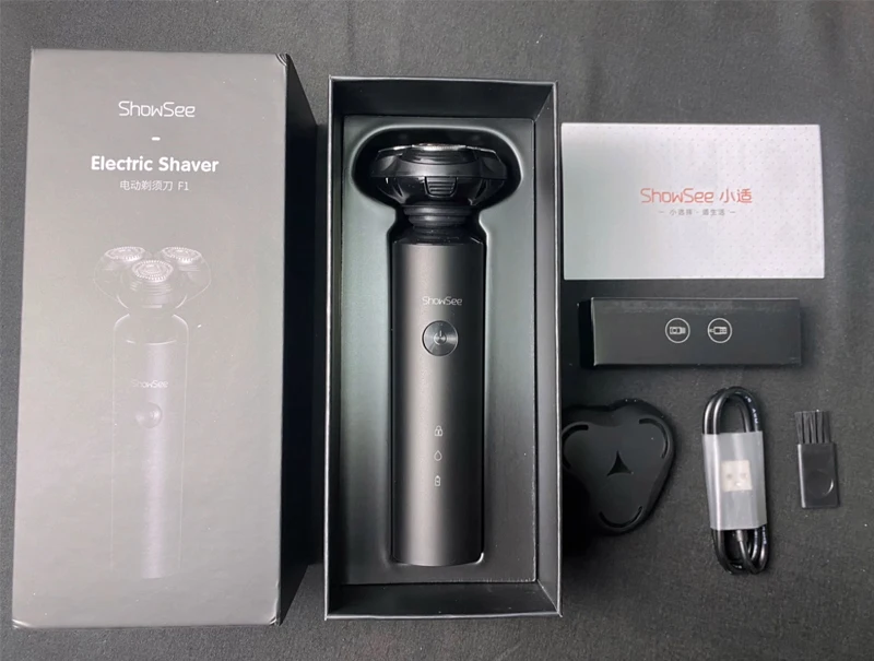 Showsee электробритваЧистое бритье, удобный опытПодушка безопасности амортизатор три режущая головка | Независимая плавающая сеть ножей |ThyssenKrupp прецизионная сталь | 3D плавающий шпонПлавающее бритье с тремя головкамиПлоскостная двойная петля для резкиУмный антиприжимной венчикIPX7 стирка тела3 минуты зарядки вспышкиСрок службы батареи 90 минут