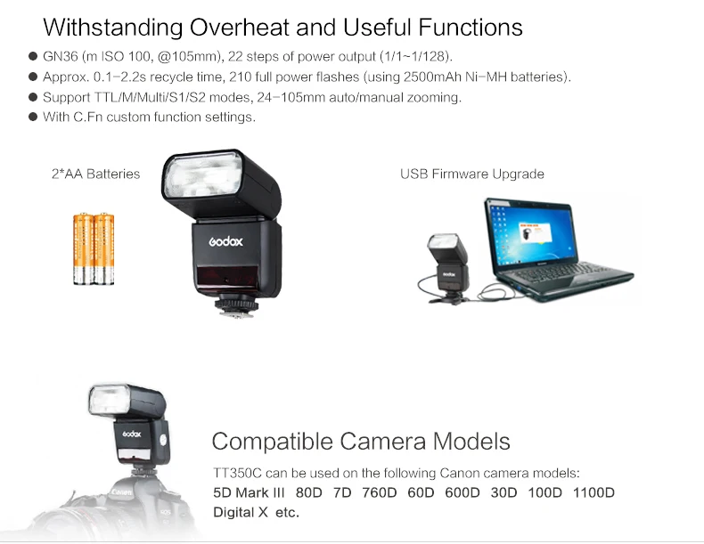Вспышка для камеры Godox TT350C TT350N TT350S TT350F TT350O TT350P вспышка для камеры TTL HSS для Canon Nikon Sony Fuji Olympus Pentax
