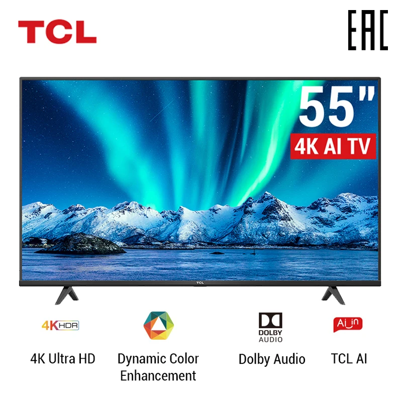 TCL Телевизор 4k 55 Smart телевизор tcl 55 inch Android AI TV 3840x2160 Ultra HD LED 55p615 WiFi 2.4g Sets Телевизор Смарт ТВ