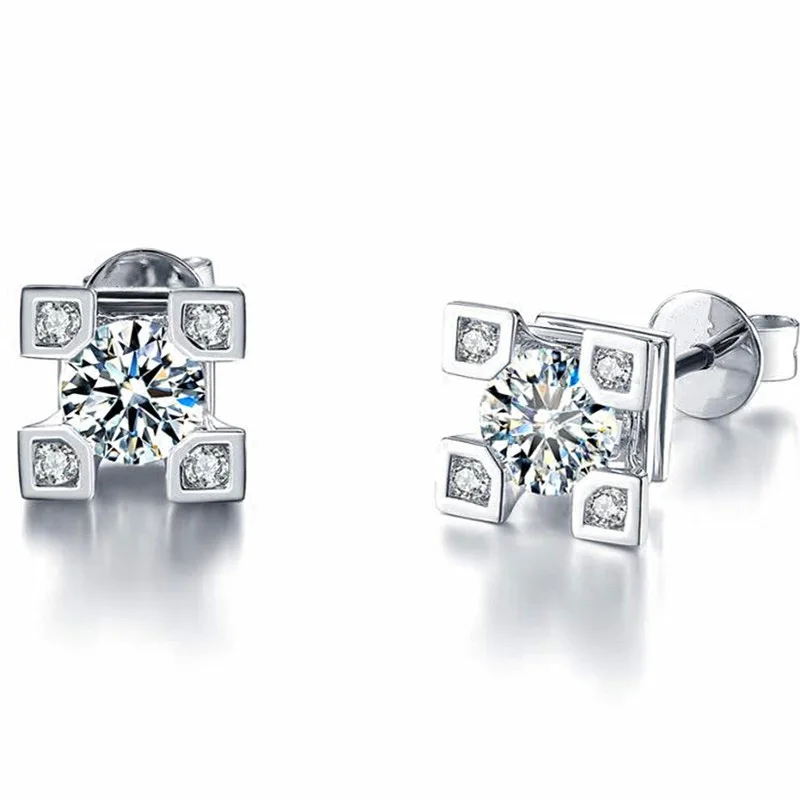 Женские серьги-гвоздики с фианитом, серебряного цвета