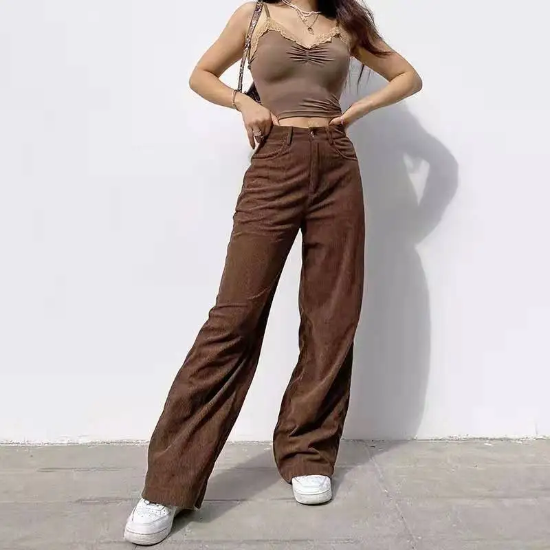 Брюки женские бархатные супер светильник, модные повседневные штаны с широкими штанинами в стиле ретро, удобные джинсовые штаны, наряды