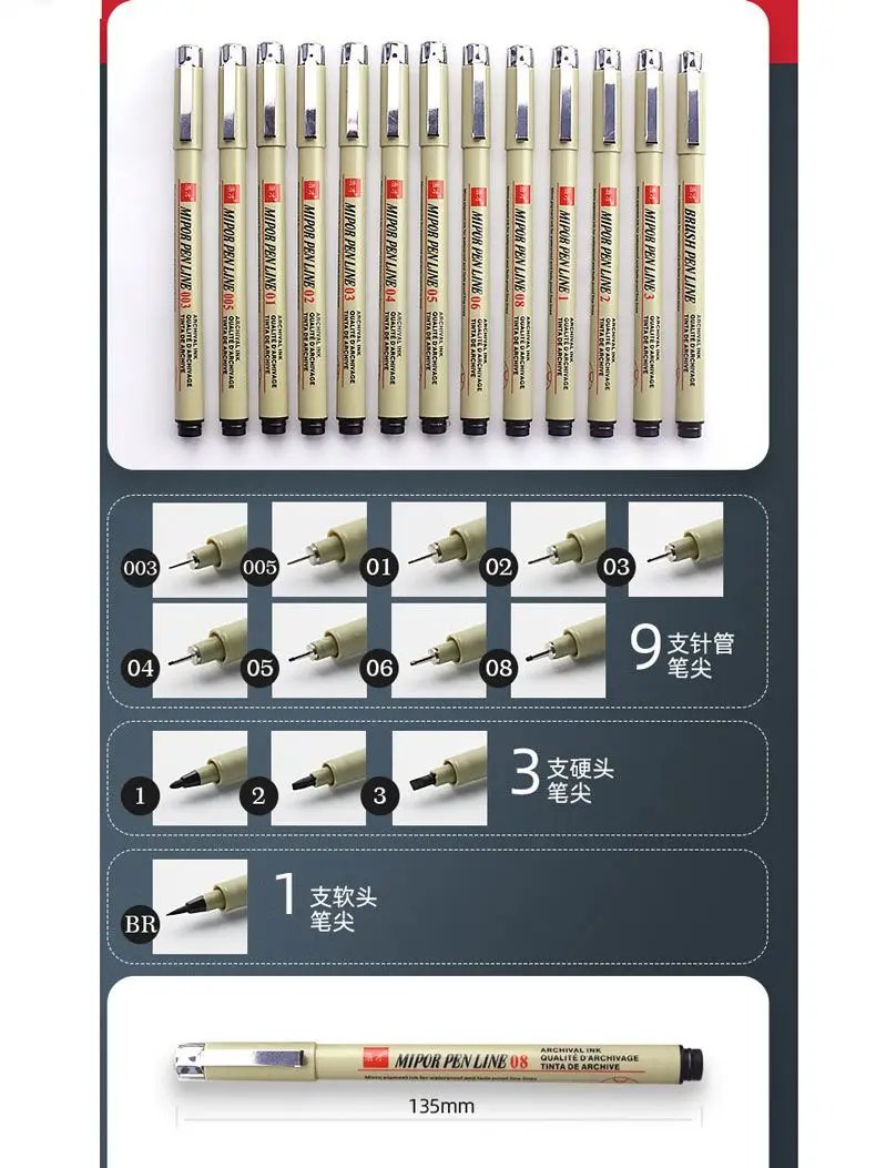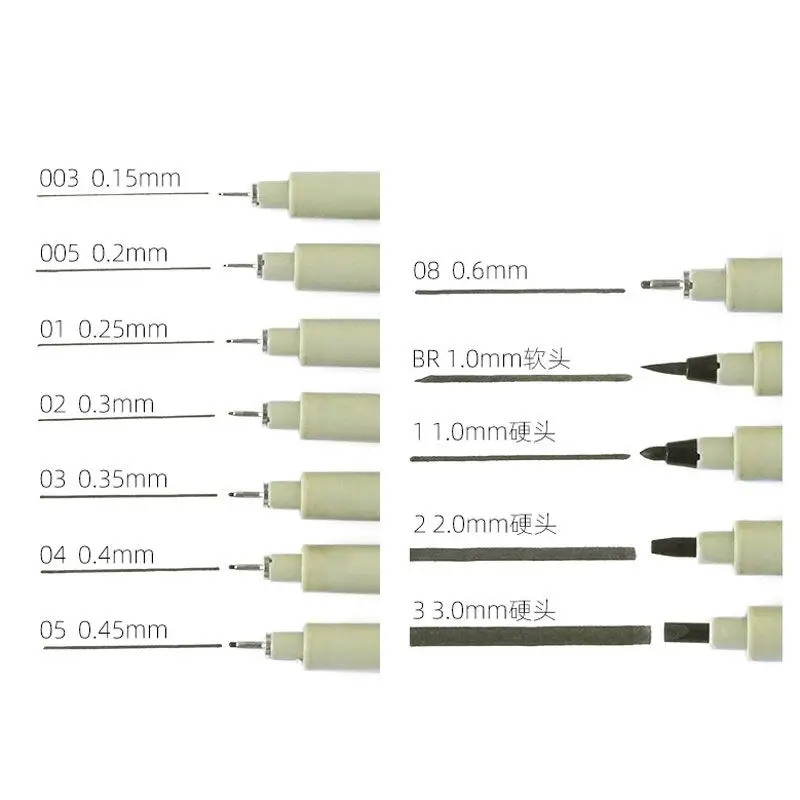 Перо размеров для точного ширина линии 0,15 ММ, 0,2 мм, 0,25 мм, 0,3 мм, 0,35 мм, 0,45 мм, 0,6 мм и 1,0 мм, 2,0 мм, 3,00 mmHard головы, 1 шт. Мягкая головка