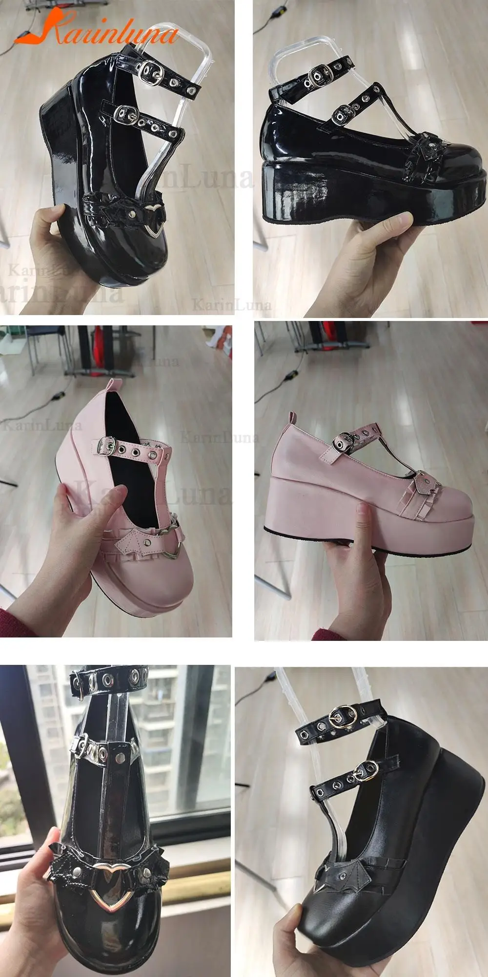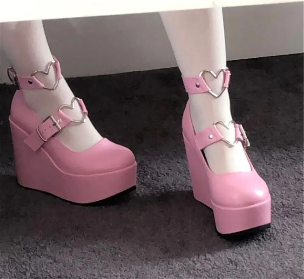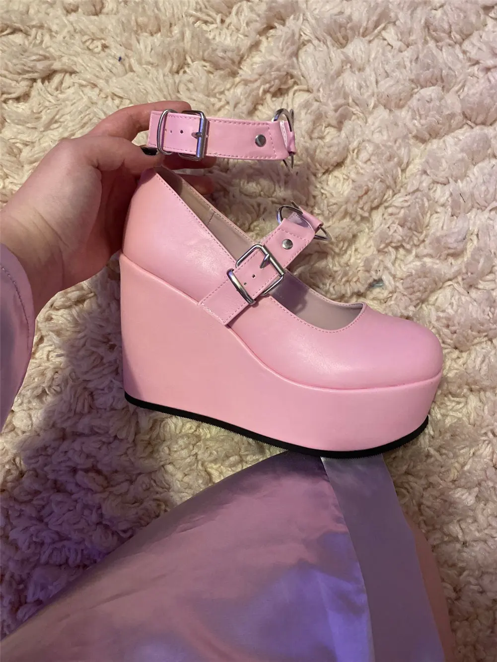 Женские туфли-лодочки на танкетке, черные, розовые, на высоком каблуке