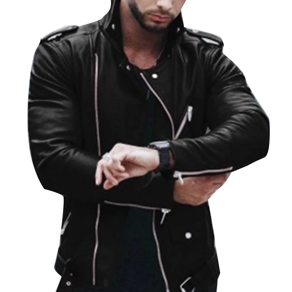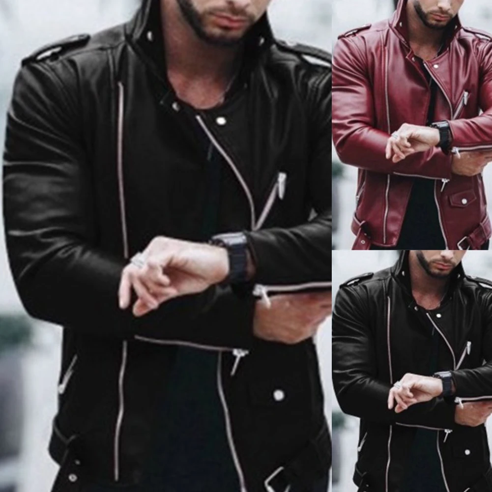 Кожаные куртки мужские осенние куртки с длинным рукавом и воротником-стойкой зимние куртки на молнии черные винно-красные пальто из искусственной кожи