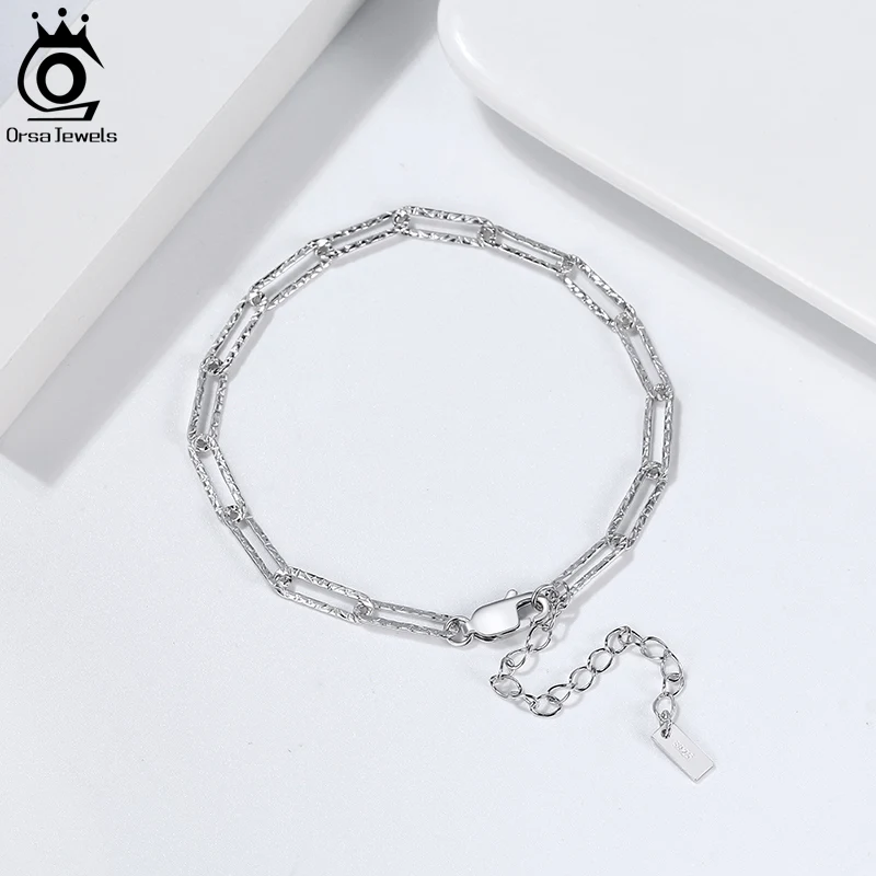 ORSA JEWELS 14K позолоченный 925 Серебряный крутой браслет-цепочка из скрепки для пар и женщин и мужчин, модные украшения SB109