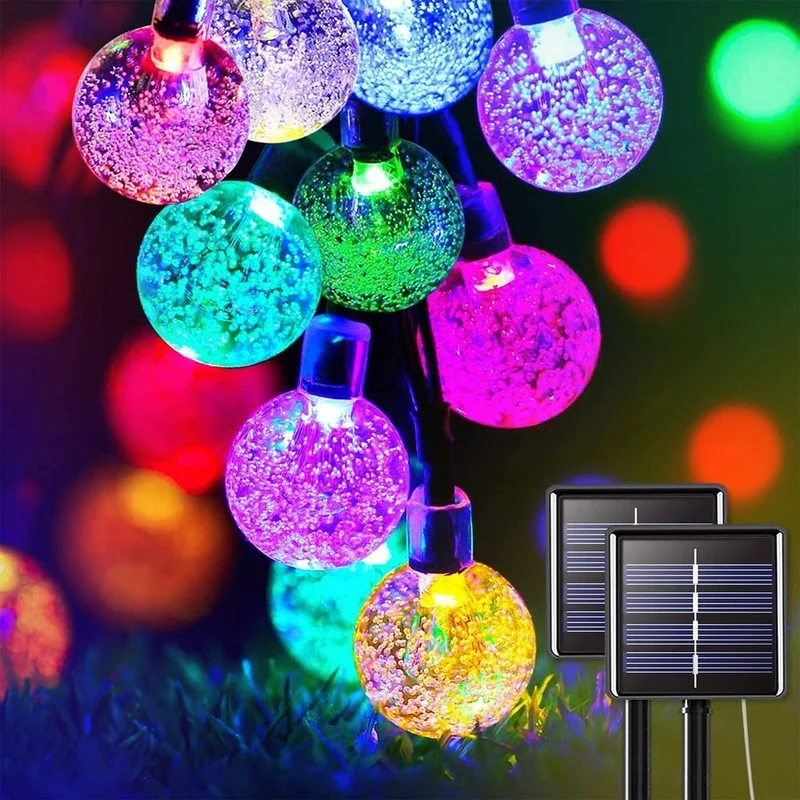 Уличная гирлянда на солнечной батарее, водонепроницаемый шнурок из 300 светодиодов с хрустальными шариками, декоративное освещение для дома, сада, патио, Рождества