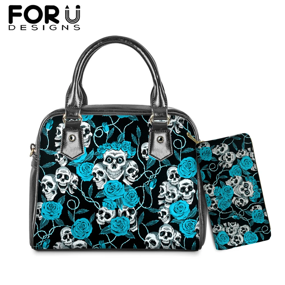 Модные повседневные женские сумки FORUDESIGNS, готический череп с синей розой, комплект женских сумок на плечо, сумка-мессенджер для леди