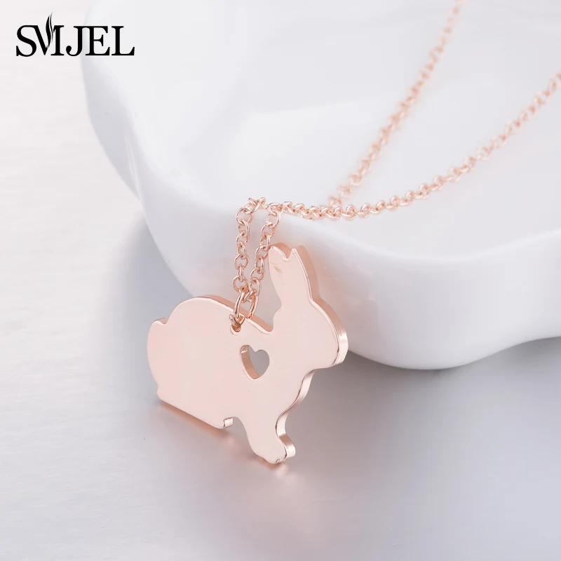 Ожерелье с милым кроликом-кроликом для женщин и девочек, ожерелье из нержавеющей стали в форме сердца и животного, ювелирные изделия, подарки на день рождения, женское колье
