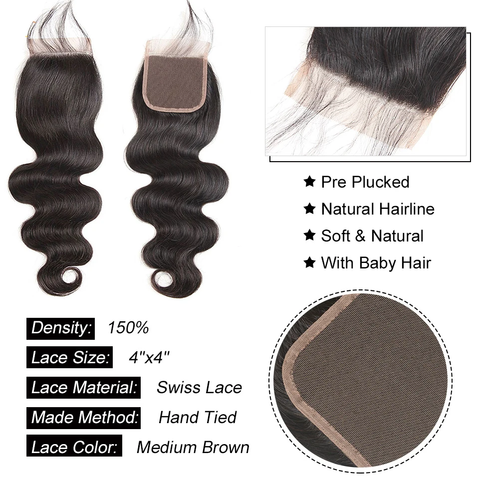 Пряди волос:8-30 дюймов, Кружевная Фронтальная застежка:10-20 дюймов,100% Remy человеческие волосы 4x4 кружева закрытие: 10-20 дюймов