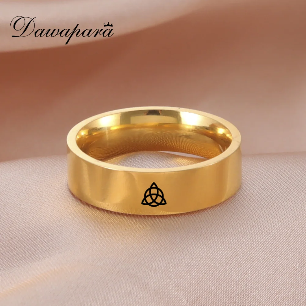 Dawapara Треугольники Celtics узел круглый перстень геометрический Nordic Викинги ирландское Triquetra амулет Нержавеющаясталь ювелирные изделия