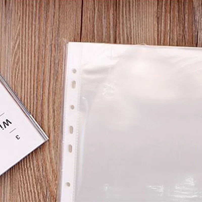 Новые прозрачные пластиковые перфорированные карманы A4 100 шт., тонкие папки для хранения документов с 11 отверстиями, папки для хранения документов, протекторы