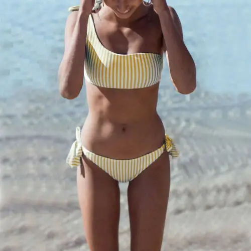 Женский купальник, полосатые бикини, с завязками на одно плечо, с п...